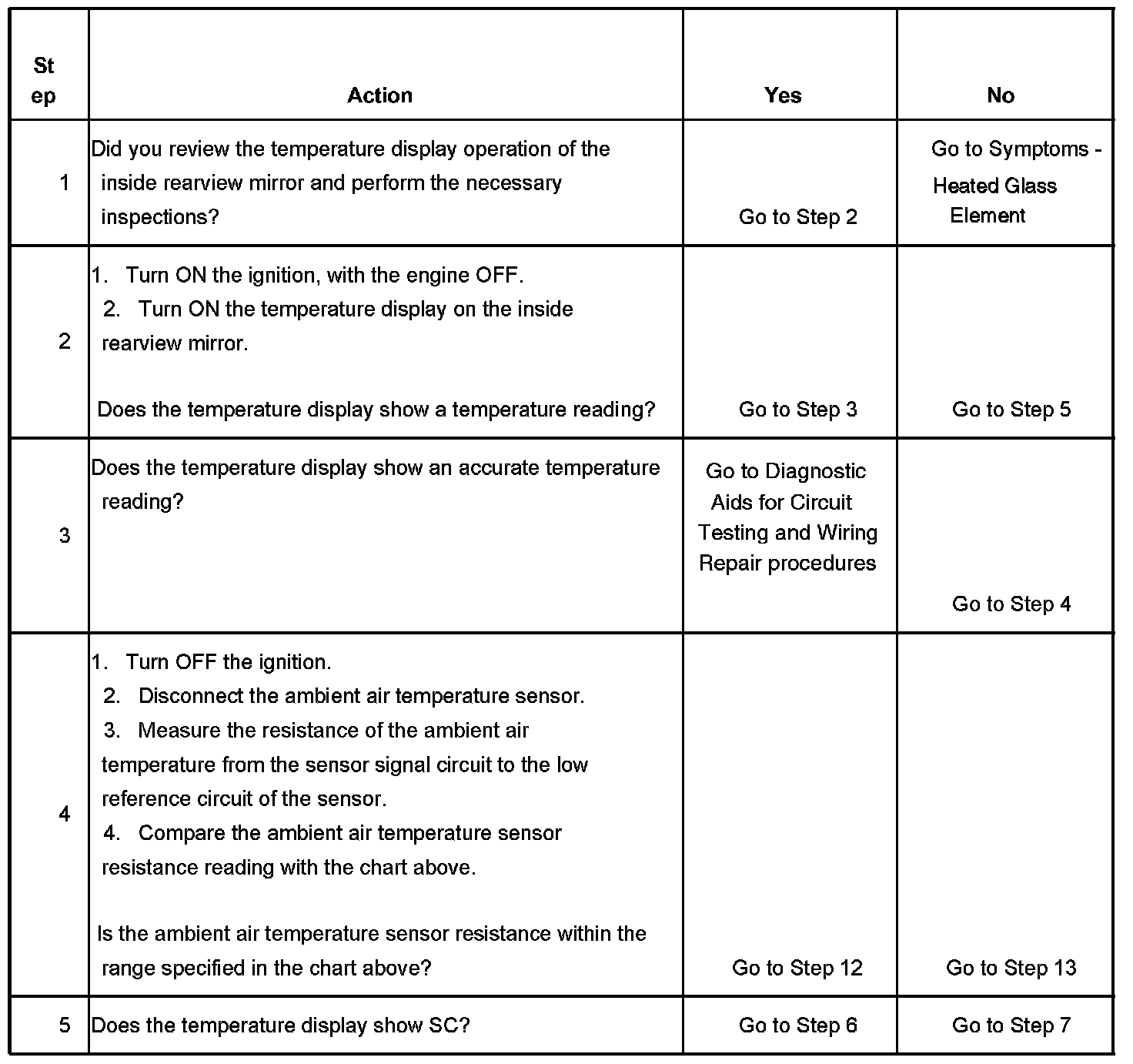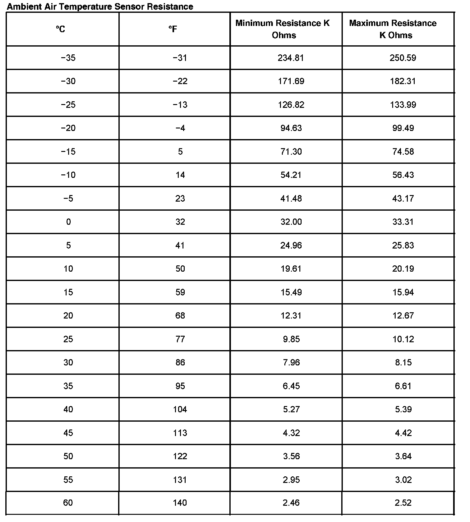 MIRRORS - TEMPERATURE DISPLAYS SC OR OCAmbient Air Temperature Sensor Resistance: