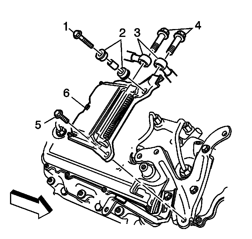3. Install the fuel injection control module (6) with mounting insulators (2).