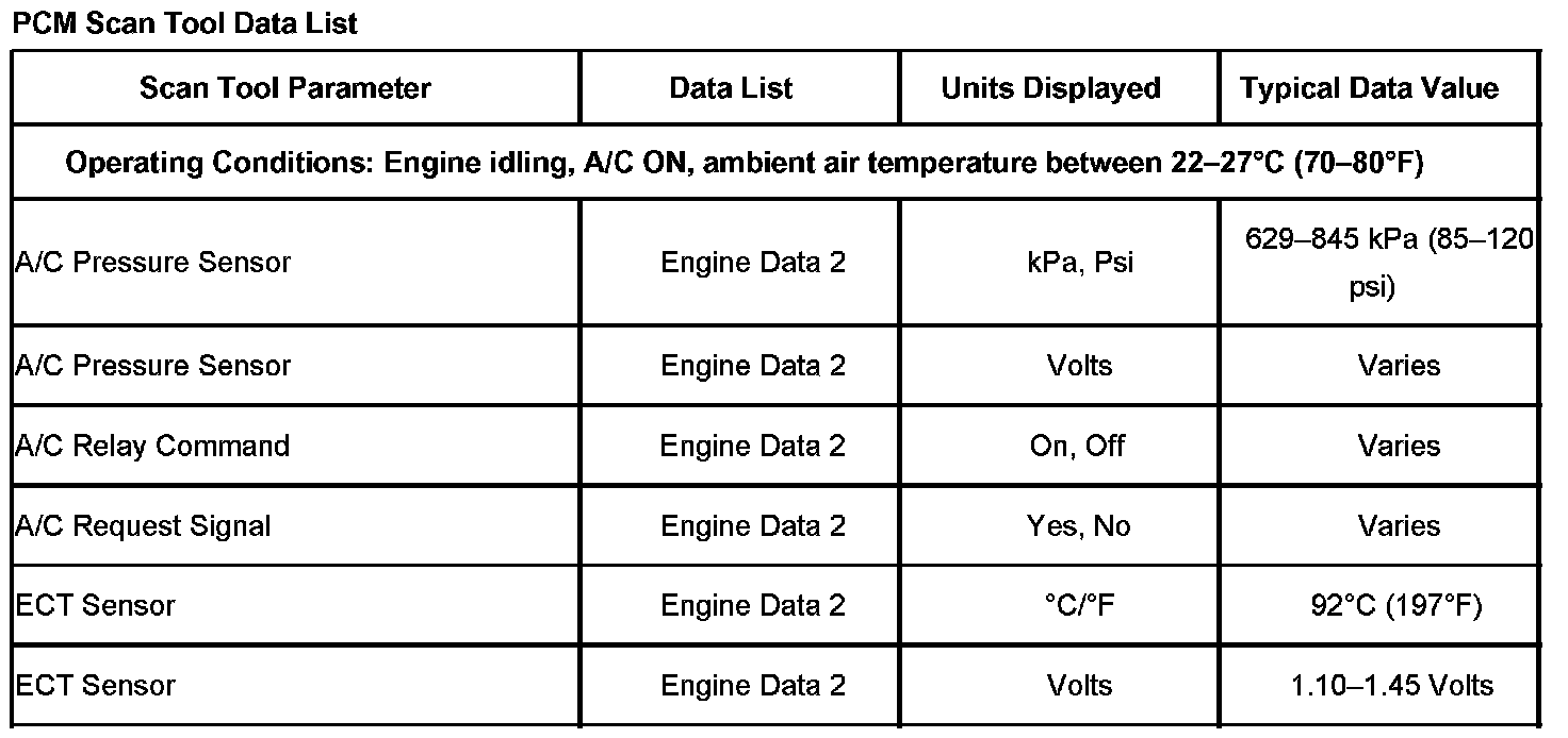 Scan Tool Data List - Powertrain Control Module (PCM)