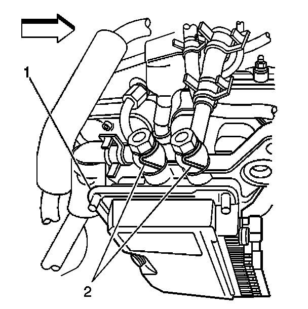 12. Remove the fuel lines (2) from the control module (1) and discard washers.
