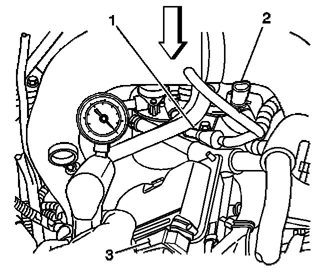 1. Install the J 44638 Vacuum Gage to the fuel system service port on the right front side of the engine.