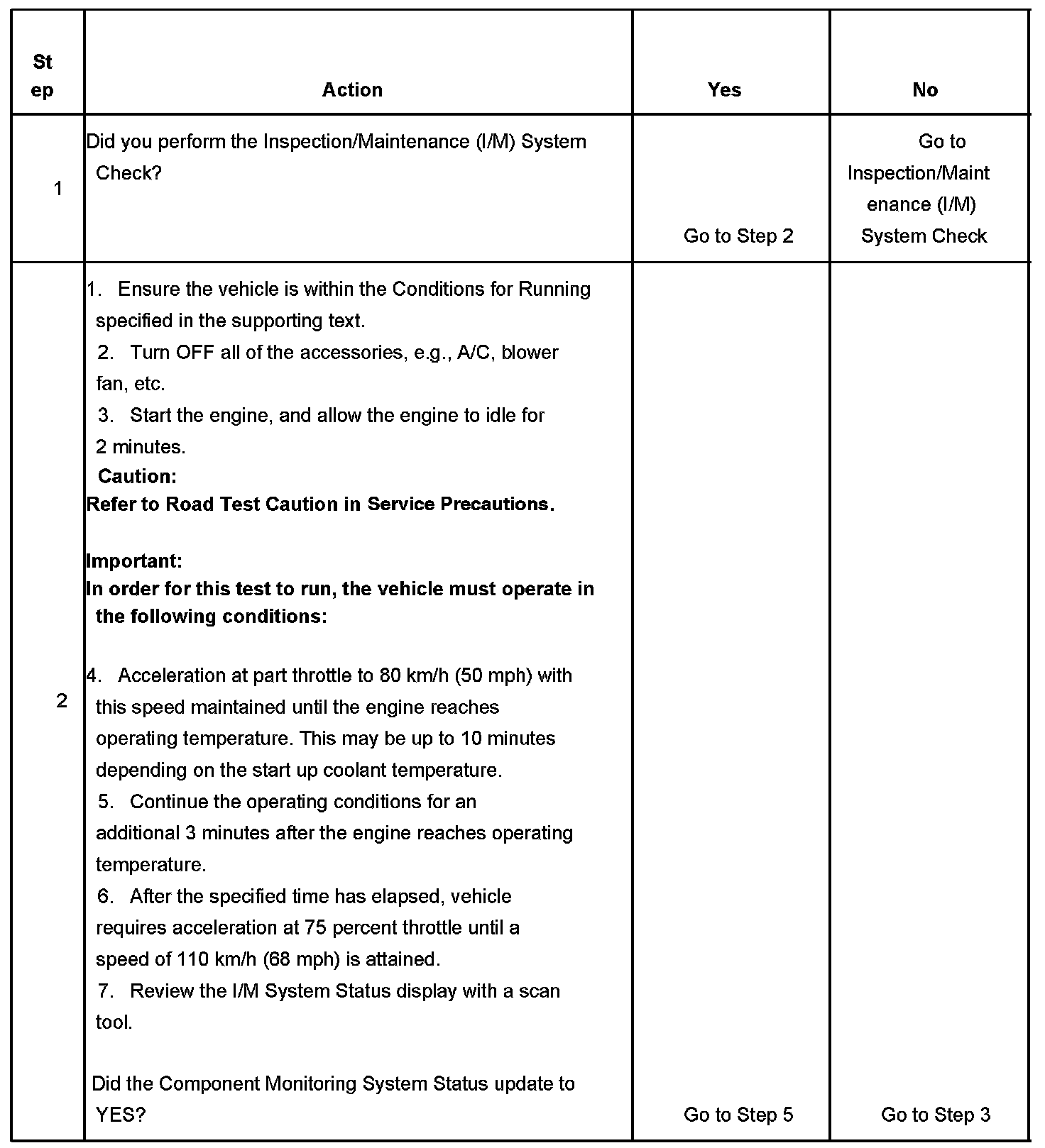 1. Ensure that you perform the I/M System Check before performing this test. Failure to do so may result in difficulty updating the status to YES.