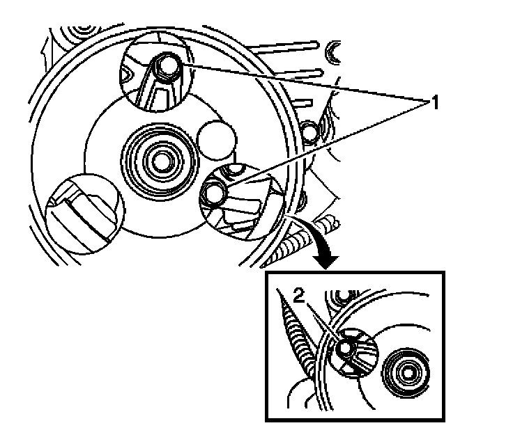 14. If equipped, remove the EGR vacuum pump bolts (1, 2). Reposition the vacuum pump.