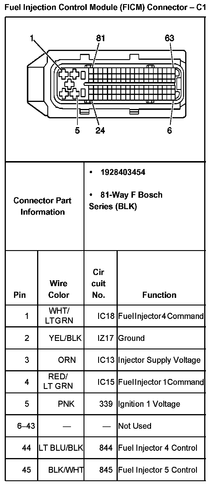 Fuel Injection Control Module (FICM) Connector - C1 Part 1: