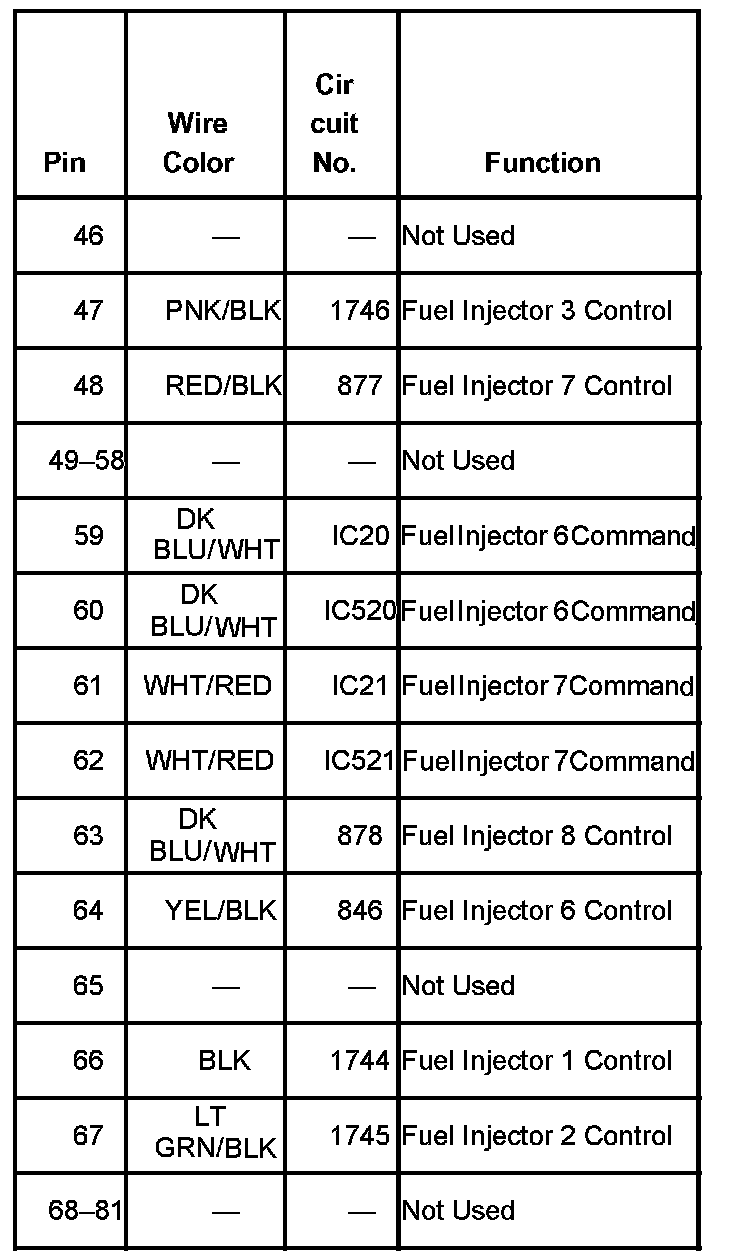 Fuel Injection Control Module (FICM) Connector - C1 Part 2: