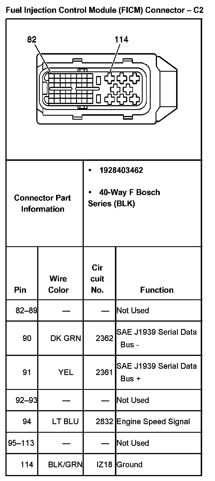 Fuel Injection Control Module (FICM) Connector - C2 Part 2: