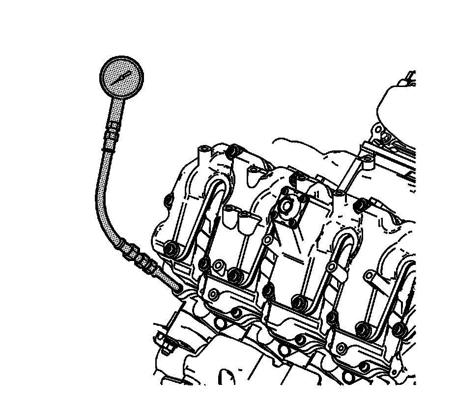10. Observe the J 26999 and note the reading as the compression test is being performed. A normal cylinder reading will be indicated if compression builds up quickly and evenly to the specified level. An abnormal reading will be indicated if compression is low on the first compression stroke, starts increasing on the following compression strokes but does not reach the specified level.