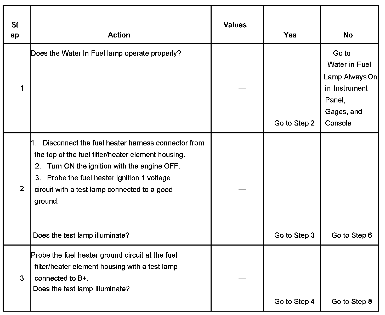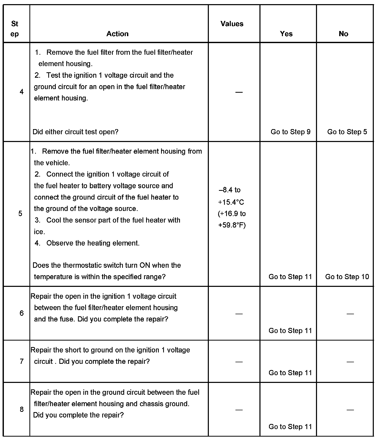 The number below refers to the step number on the diagnostic table.