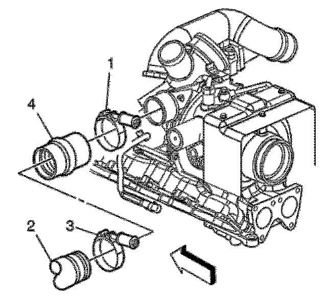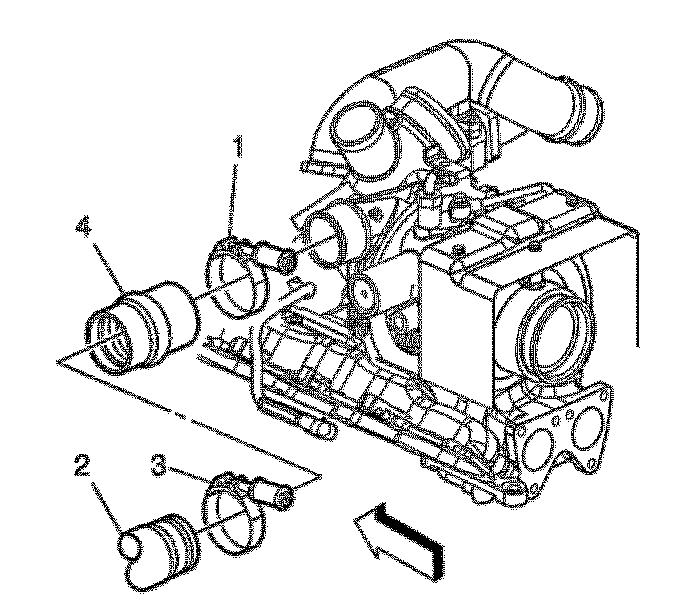 5. Remove the charged air cooler inlet duct connector (4) from the turbocharger.