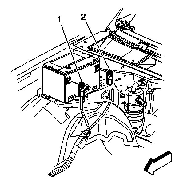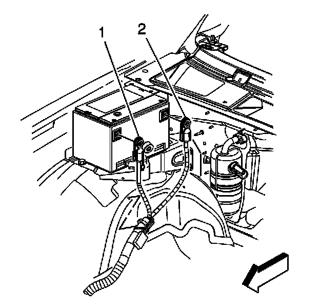 12. Connect the auxiliary battery negative cable (2).