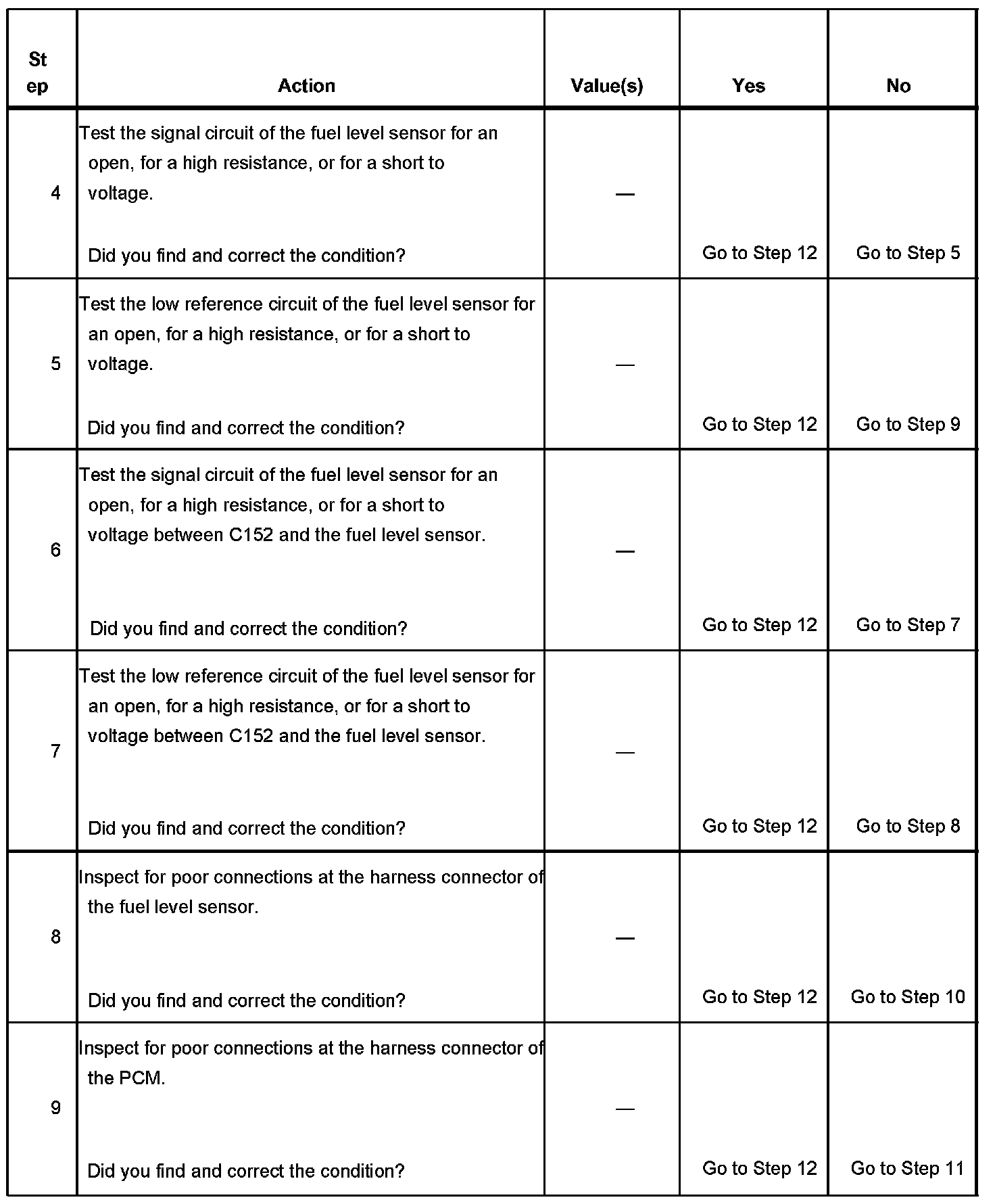 The number below refers to the step number on the diagnostic table.