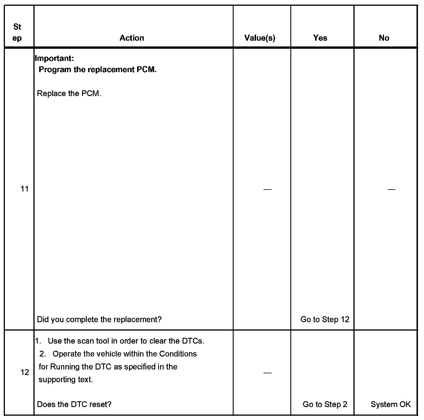 - The PCM receives the clear code command from the scan tool.