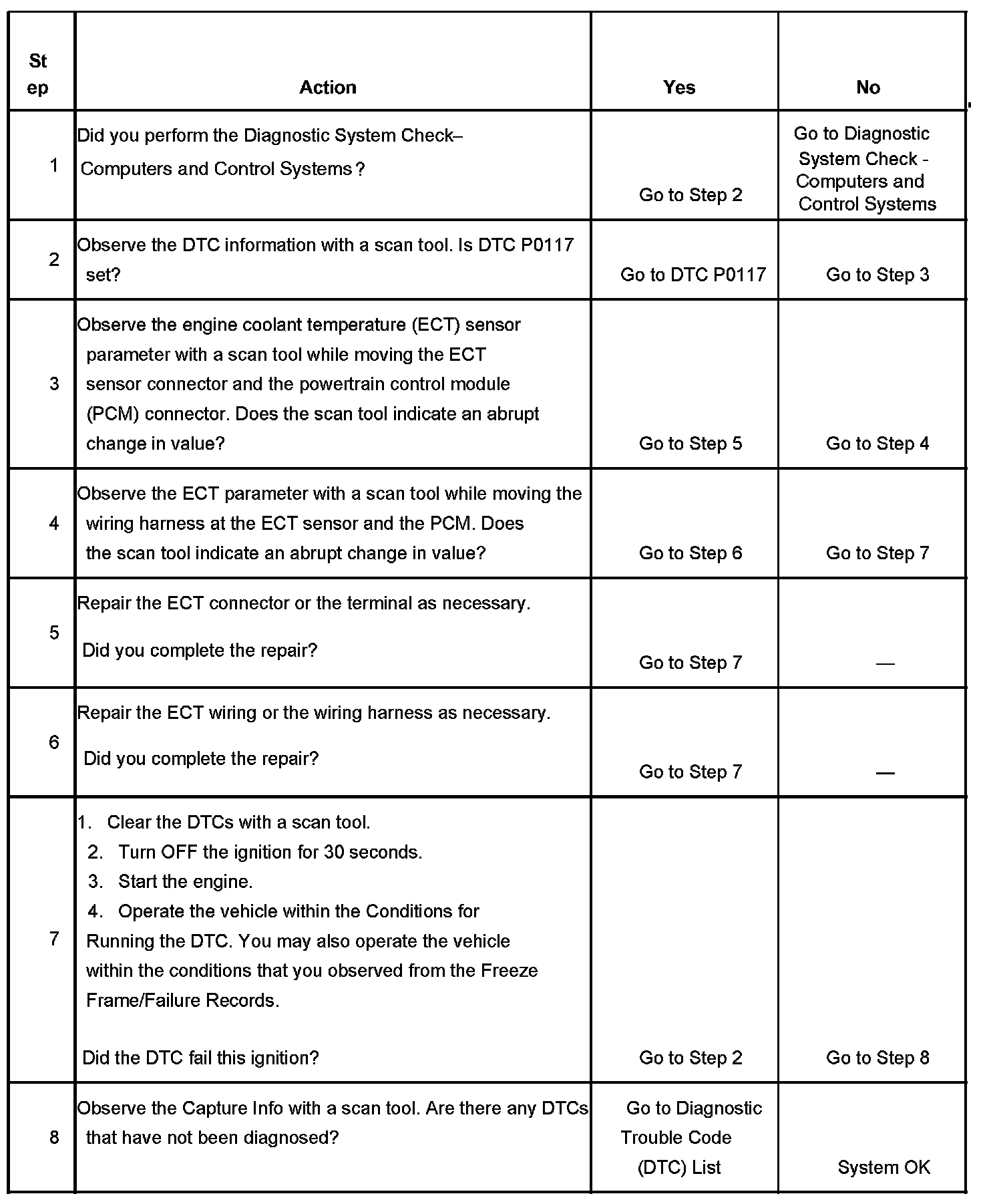 - An intermittent short to ground in the ECT sensor signal circuit could result in a DTC P1114.