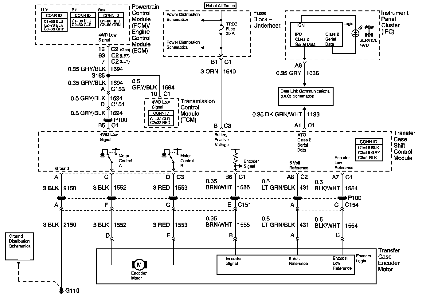 Power, Ground, Class 2 Serial Data and Transfer Case Encoder Motor