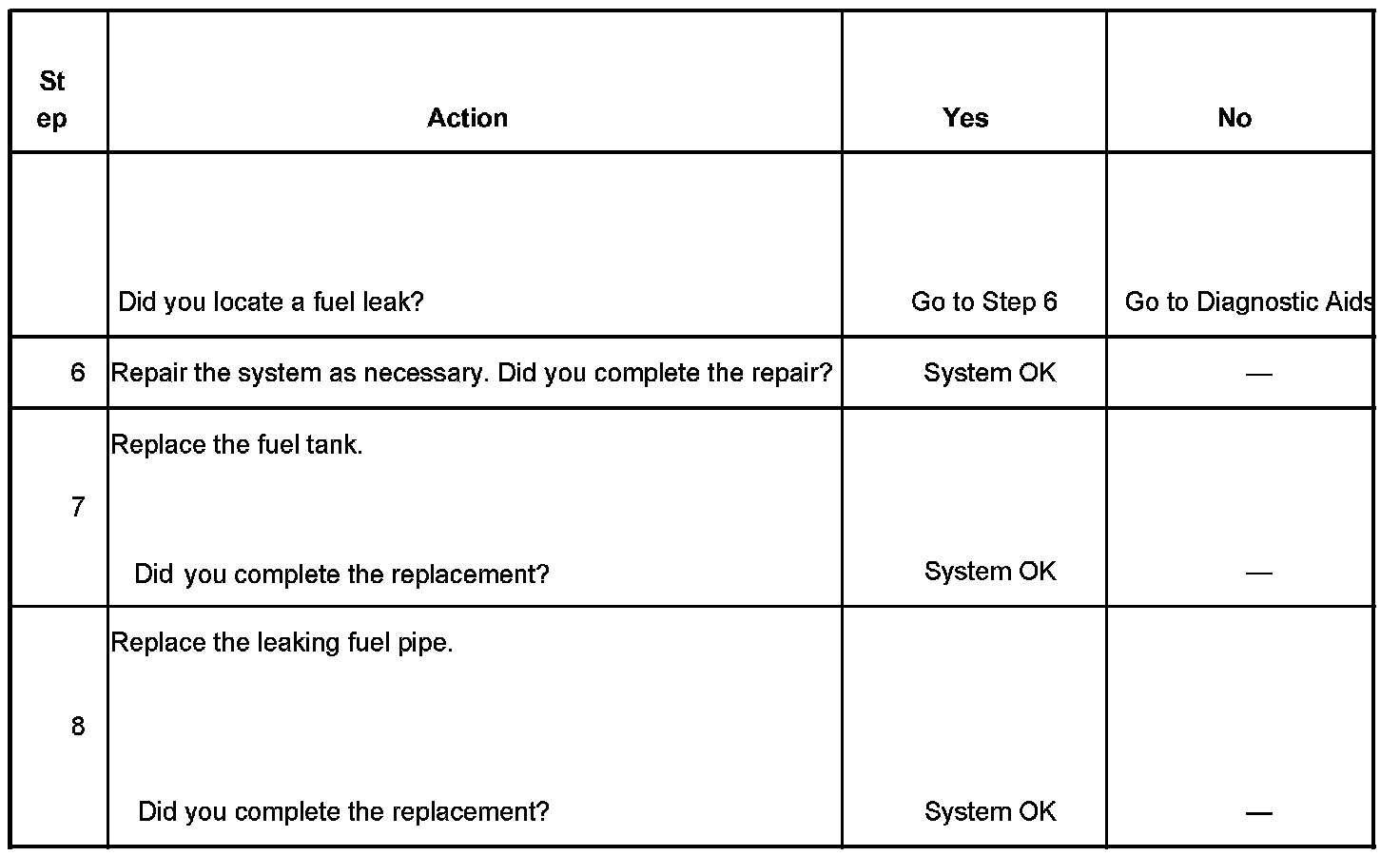 - Test for fuel leaking in the following locations: