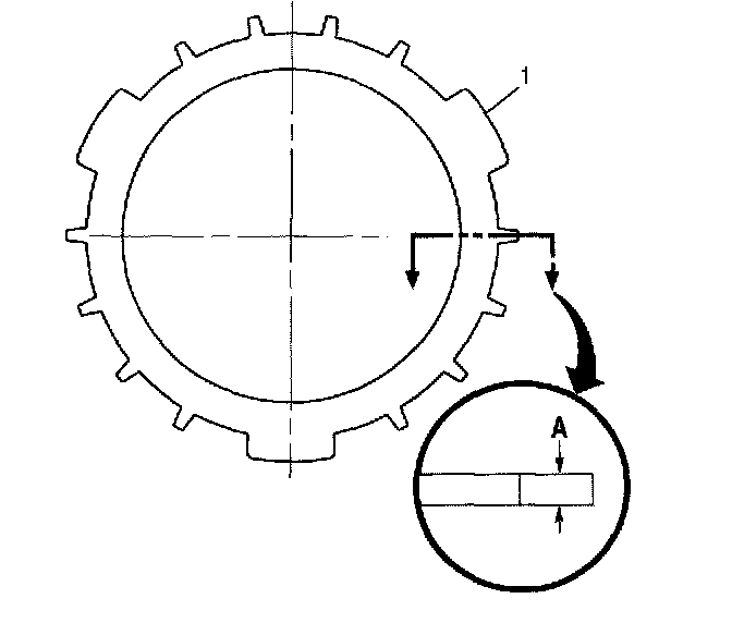 1. Measure the thickness of each C5 clutch backplate (1) at dimension A.