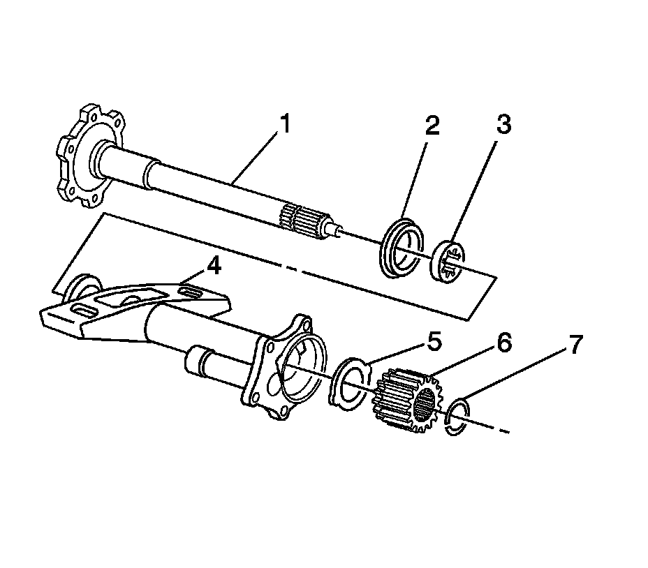 3. Install the retaining ring (7) into the inner axle shaft (1).