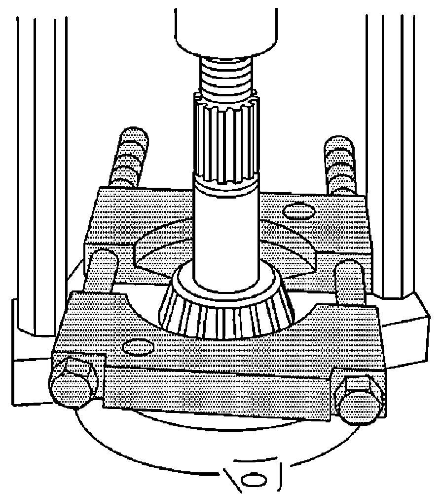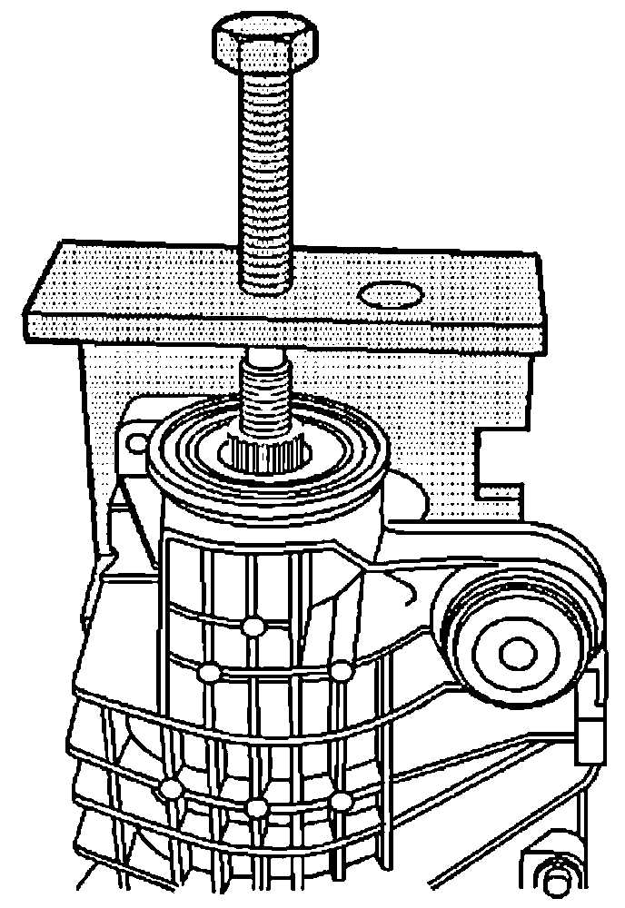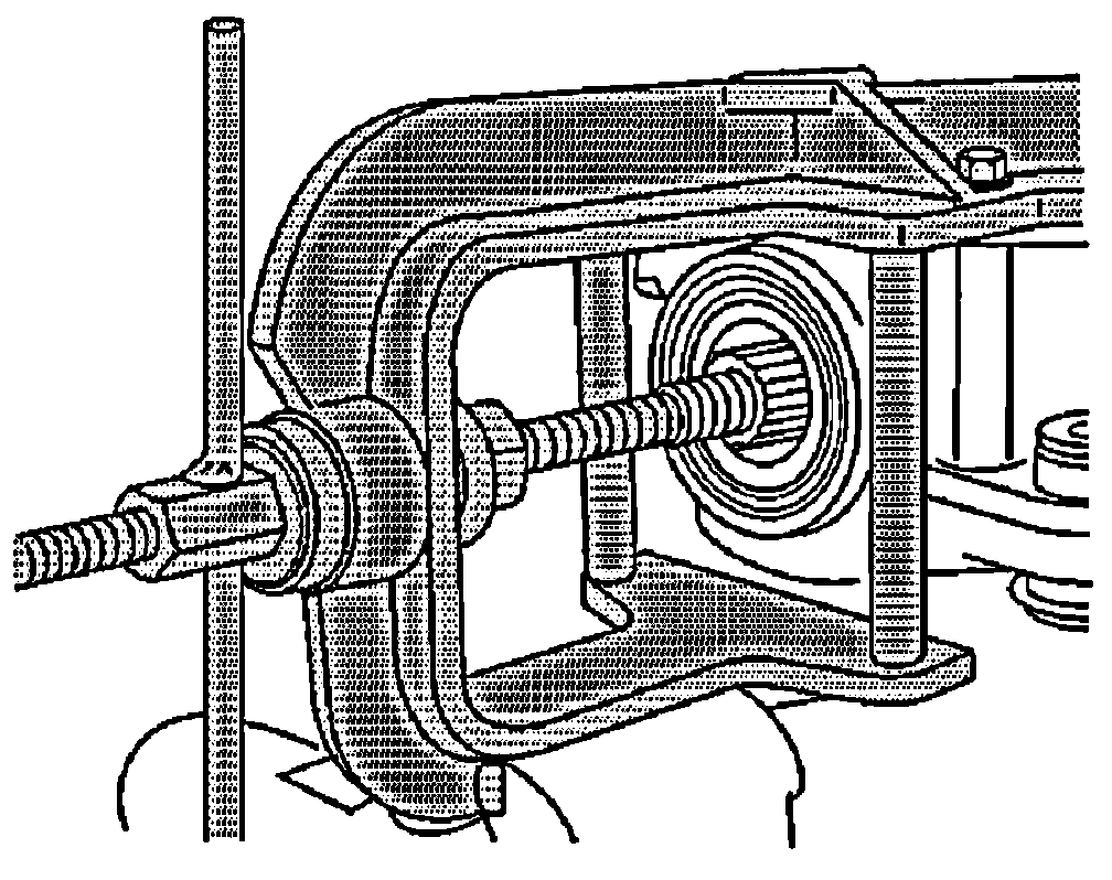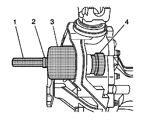 - Slowly turn the forcing screw clockwise until the J 45858-5 is evenly seated behind the outer pinion bearing cup bore and the J 45858-3 is evenly seated over the outer pinion bearing cup bore.