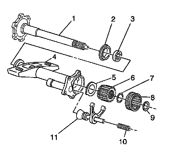 9.5. The front drive axle clutch gear (6) by doing the following: