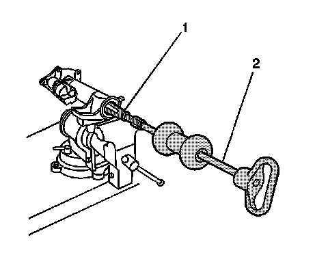 40. Install the forcing screw (1) of the J 45858 into the J 45858-4 (2).