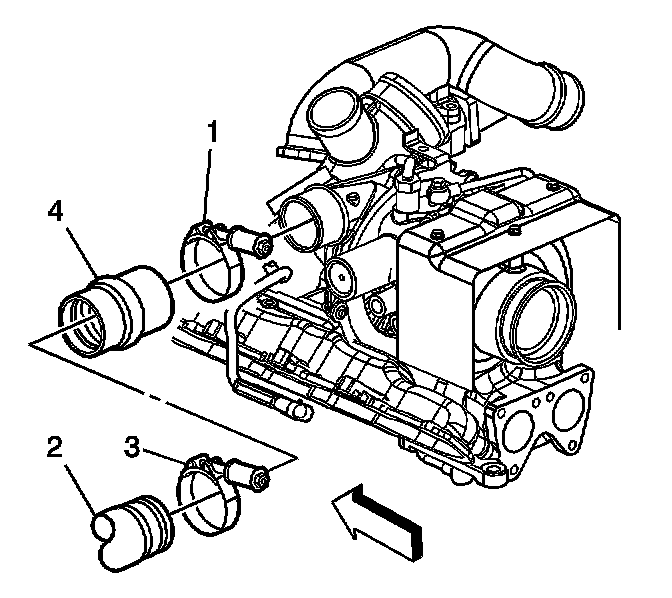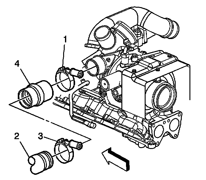 4. Install the charged air cooler inlet duct connector (4) to the turbocharger.