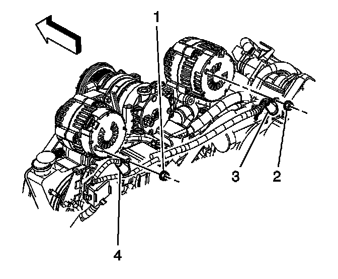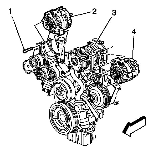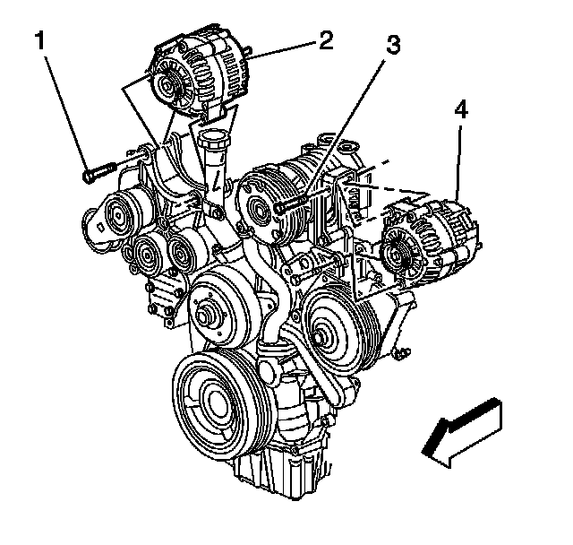 5. Remove the auxiliary generator bolts (3).