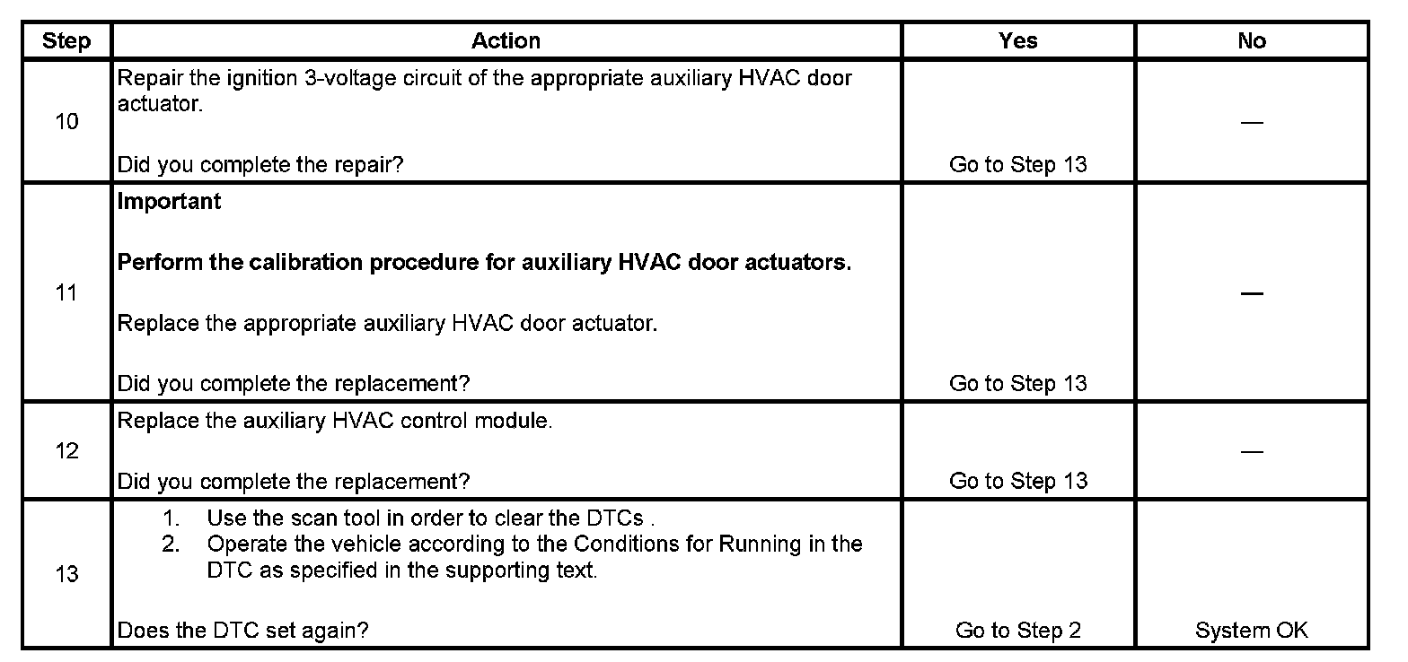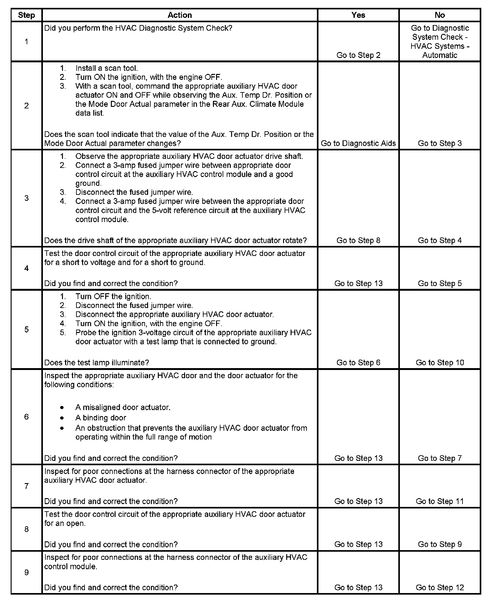 2. Determines if the auxiliary HVAC door actuator is stalled.