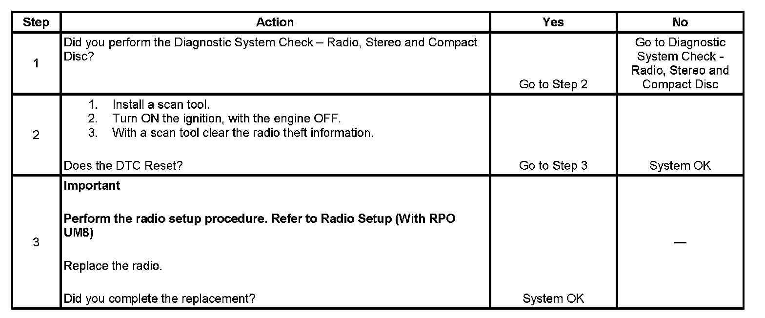 Re-calibration with the correct calibrations for the vehicle and cycling the Radio to OFF then to ON will clear the DTC if there is no damage to the Radio.