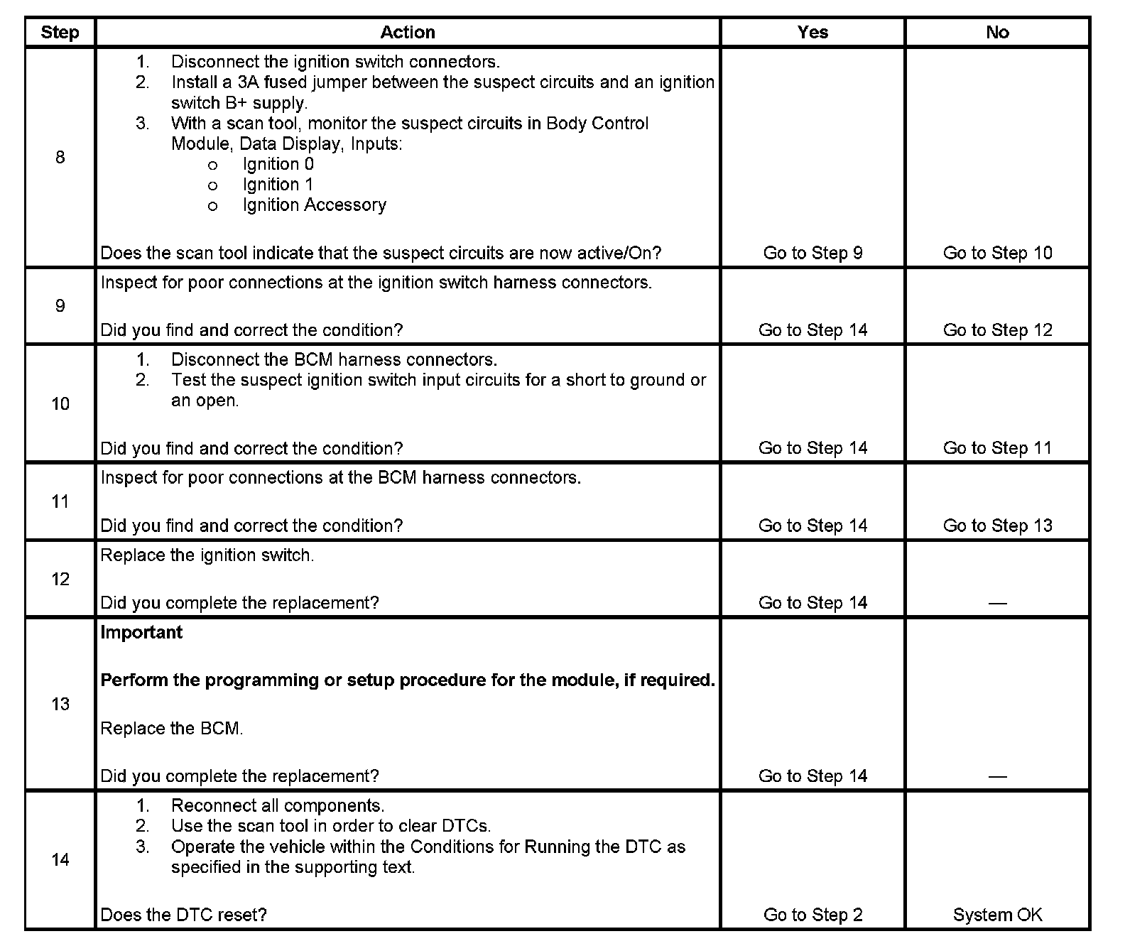 One of the 3 monitored ignition switch circuits has malfunctioned. The DTC will set, if one of the following situations is present: