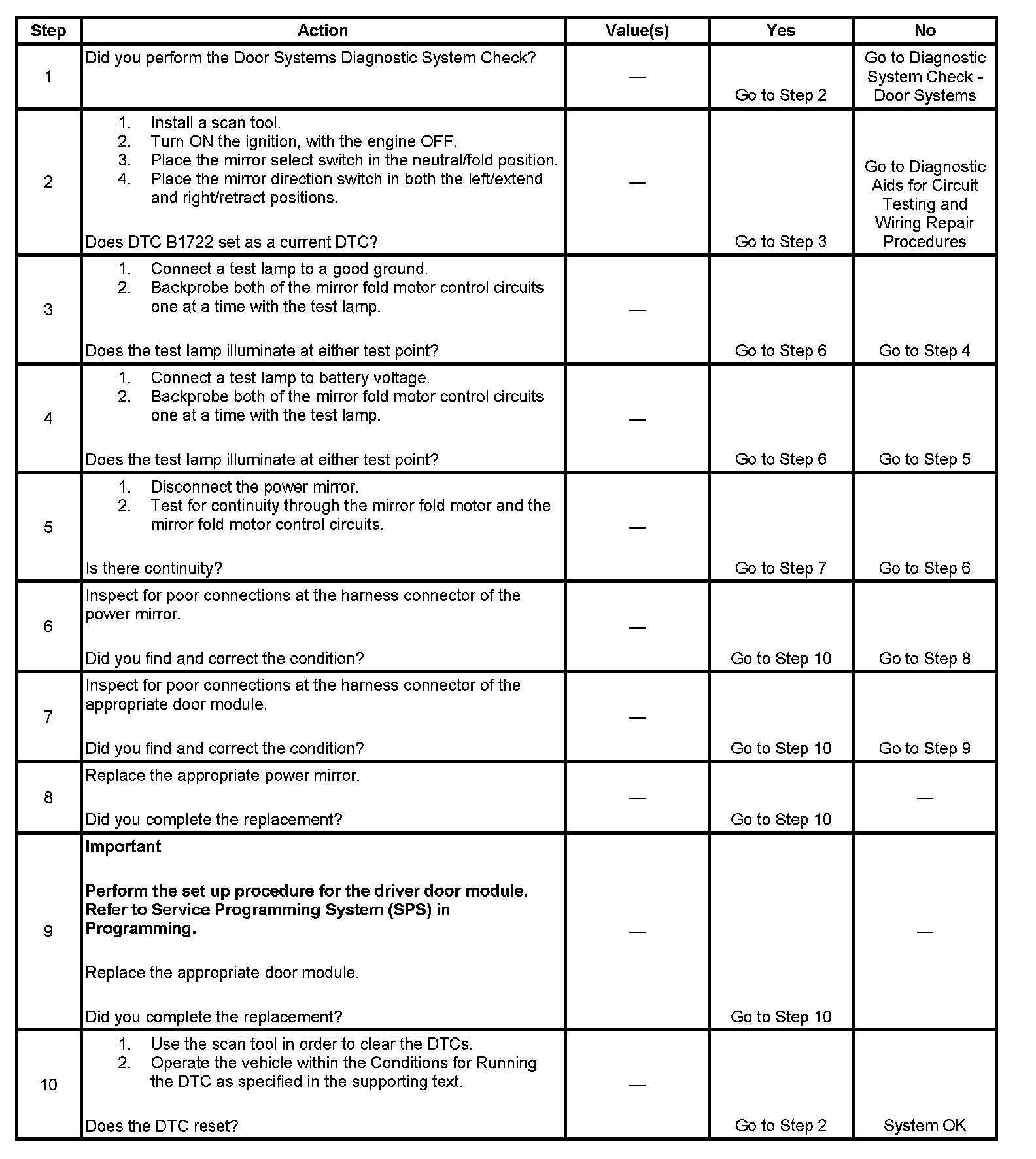 When the fault is no longer present, the door module changes the current DTC to a history DTC. The door module will clear the history DTC after 50 fault free ignition cycles, or in response to a scan tool command.