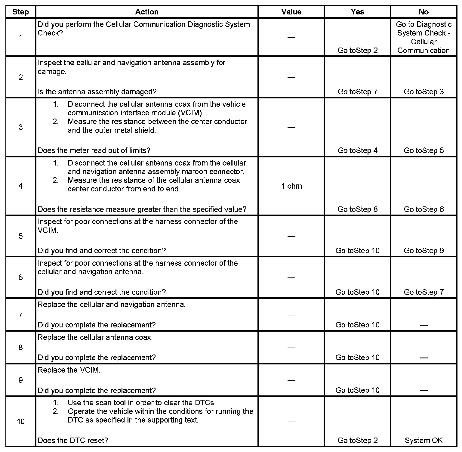 3. This step tests the condition of the cellular antenna coax and for proper ground of the cellular antenna.