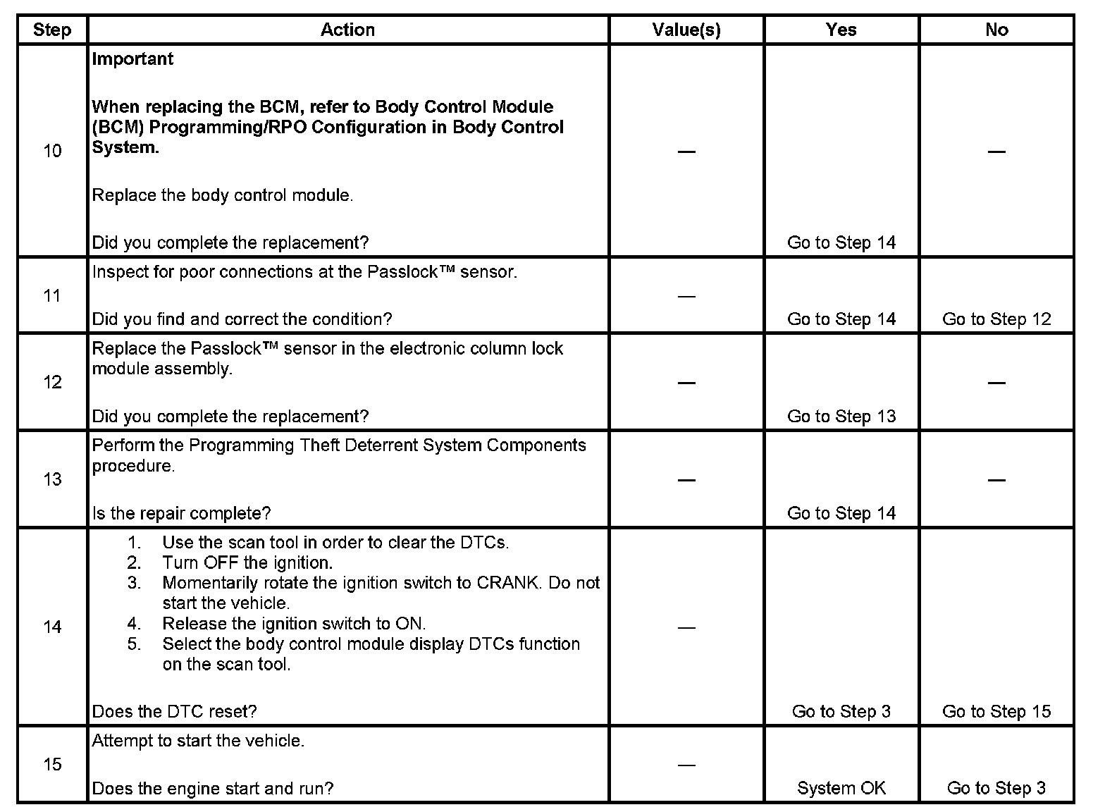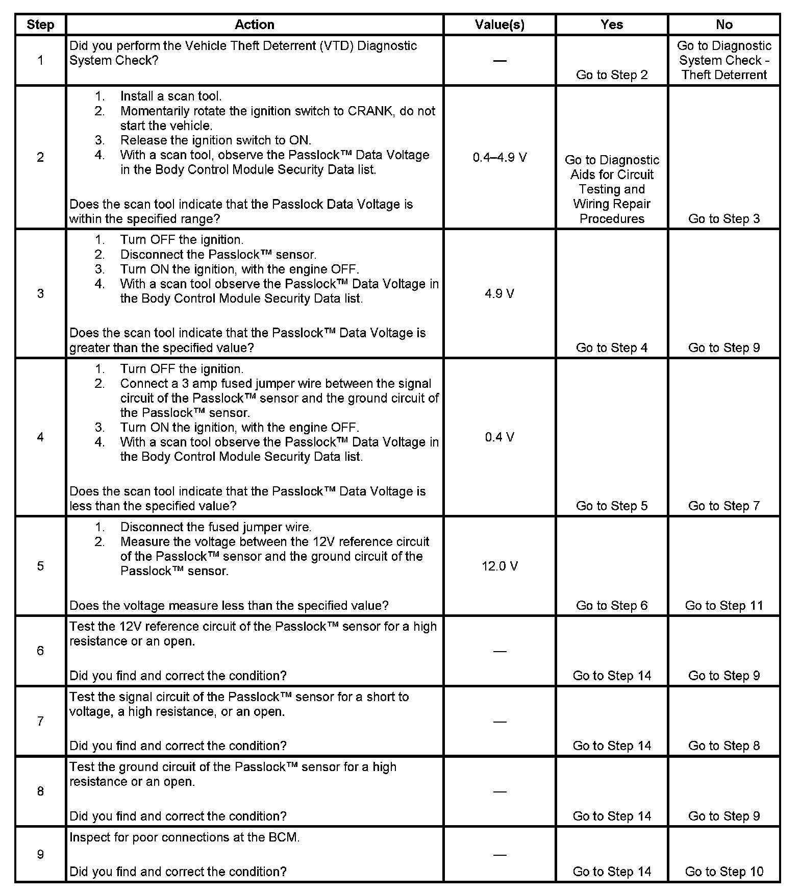 - Inspect the Passlock(TM) sensor harness for an intermittent or a short to battery.