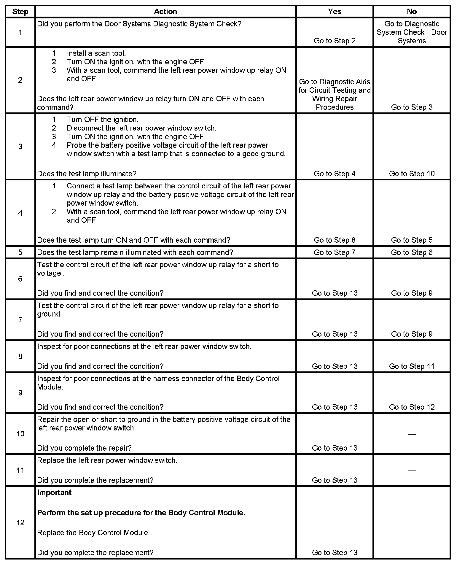 - When the BCM has grounded the left rear power window up relay control circuit and the control circuit is shorted to battery positive voltage.