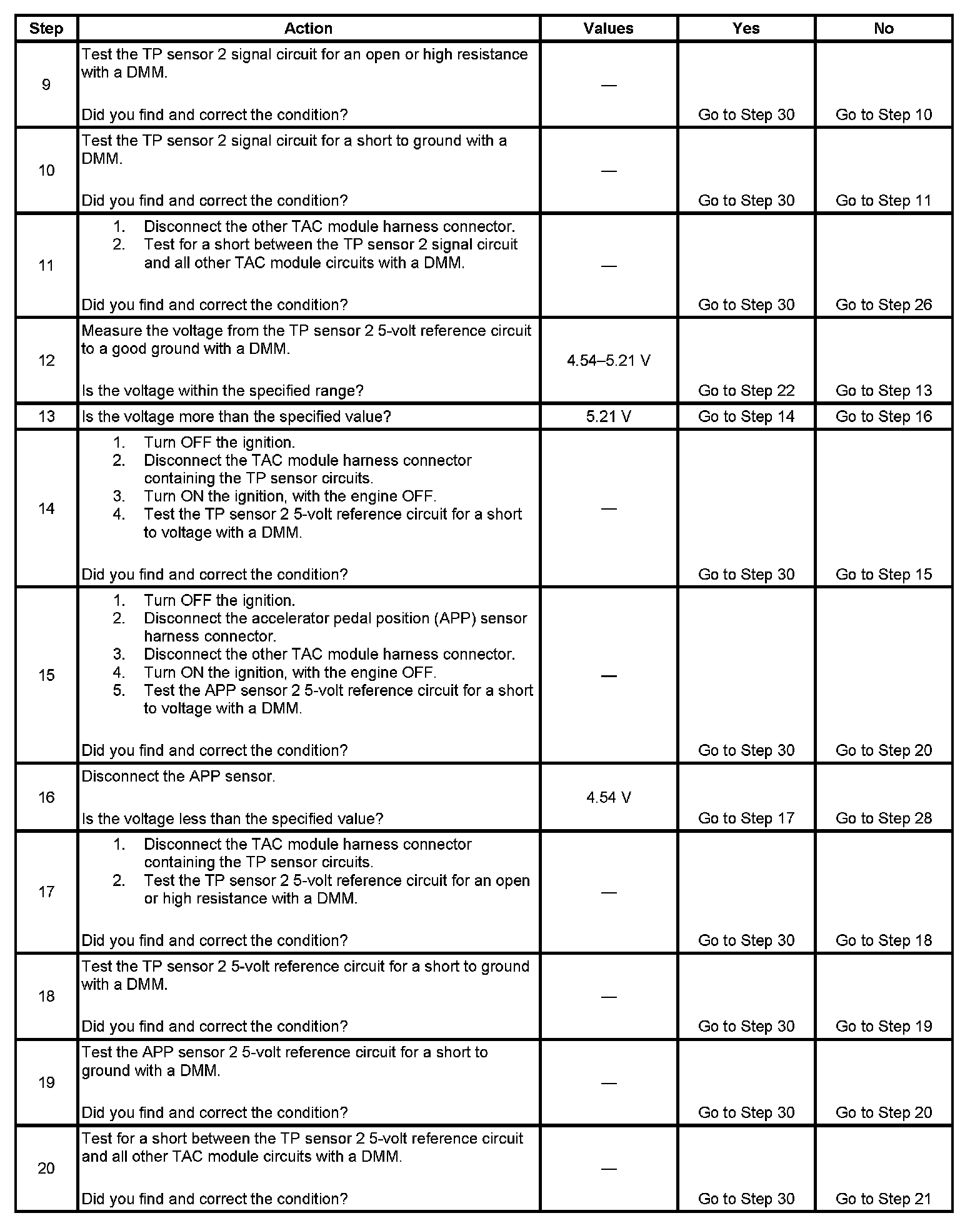 - The TP sensor 2 voltage is less than 0.28 volt or greater than 4.60 volts.