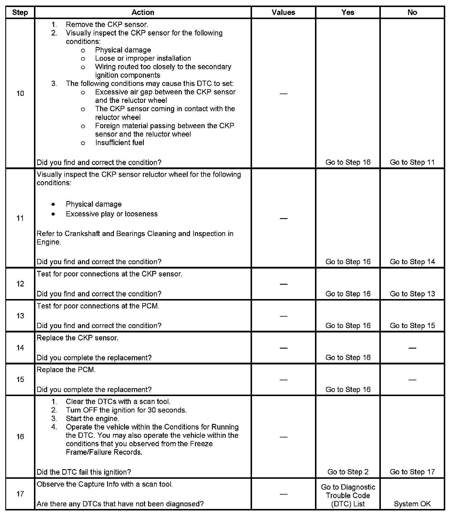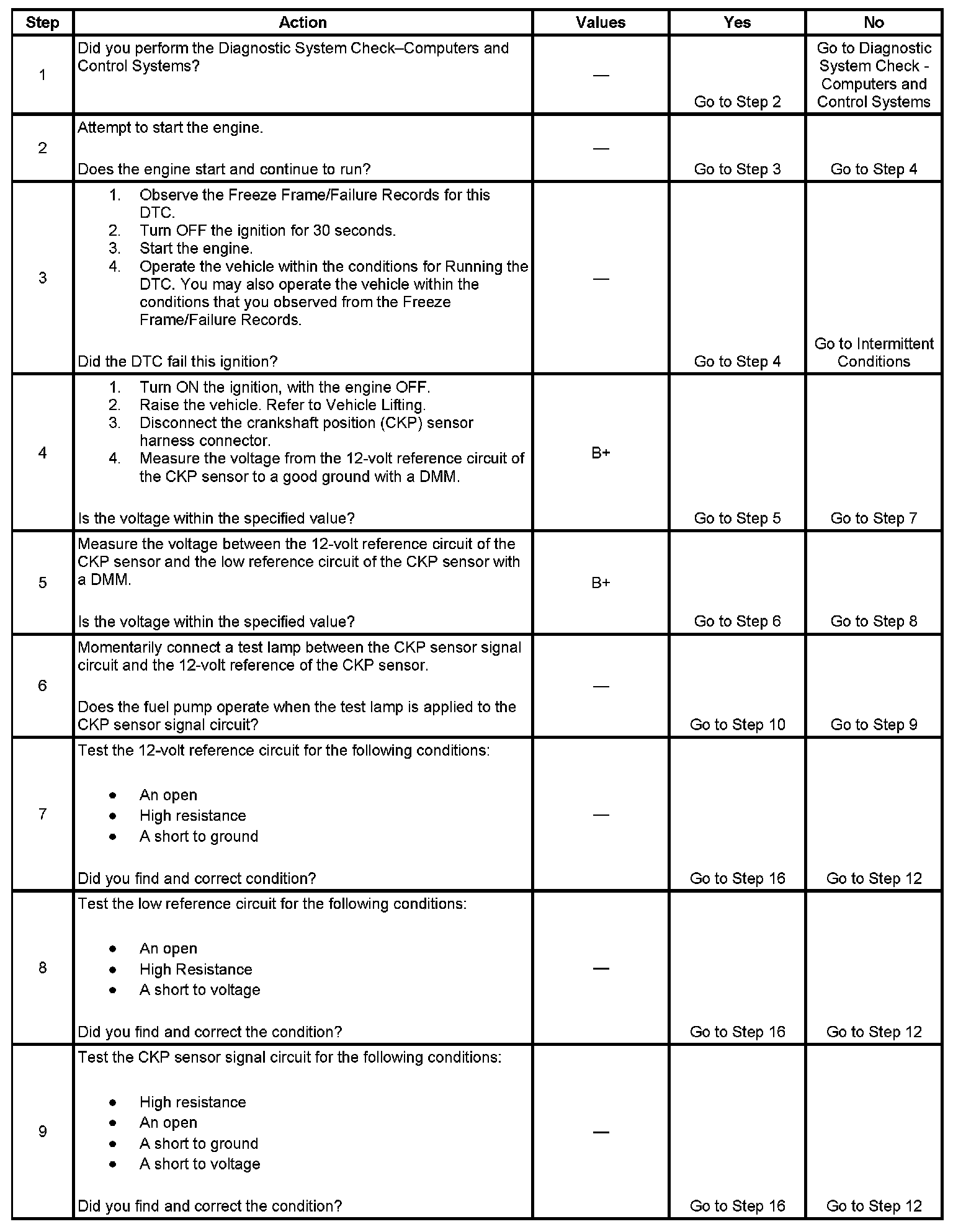 - The CKP sensor signal circuit