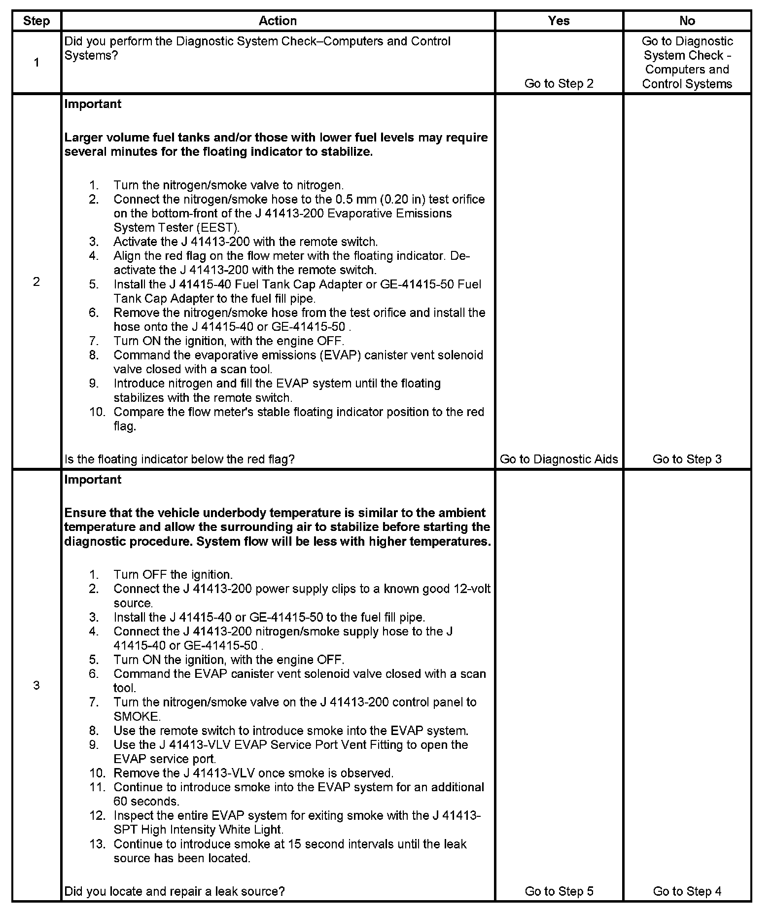 - To help locate intermittent leaks, use the J 41413-200 Evaporative Emissions System Tester (EEST) to introduce smoke into the EVAP system. Move all EVAP components while observing smoke with the J 41413-SPT High Intensity White Light.