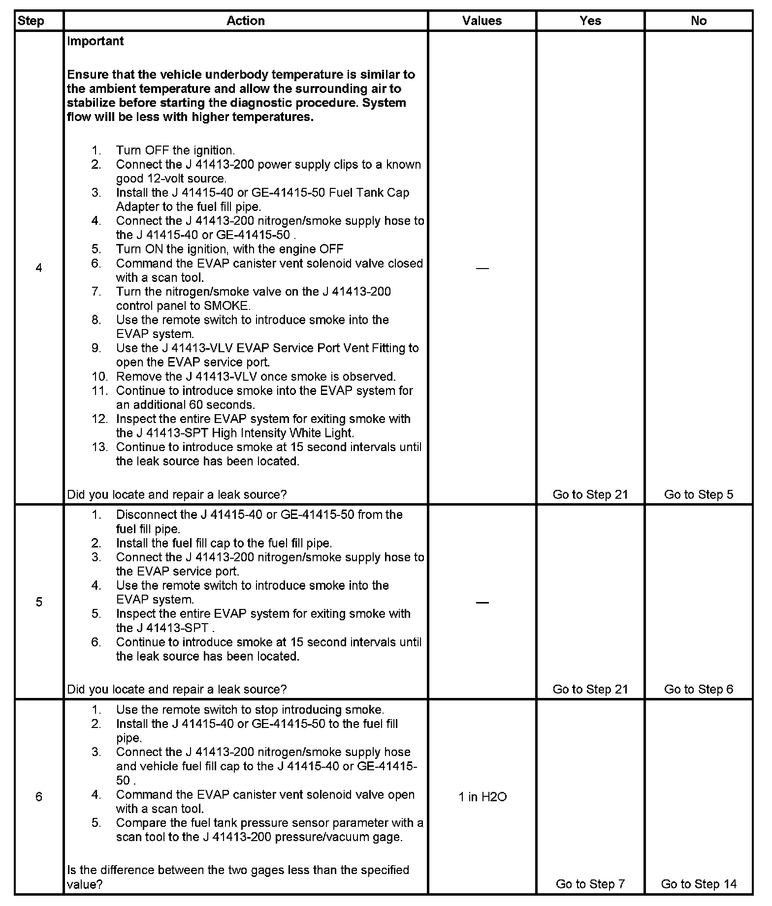 - To help locate intermittent leaks, use the J 41413-200 Evaporative Emissions System Tester (EEST) to introduce smoke into the EVAP system. Move all EVAP components while observing smoke with the J 41413-SPT High Intensity White Light. Introducing smoke in 15 second intervals will allow less pressure into the EVAP system. When the system is less pressurized, the smoke will sometimes escape in a more condensed manner.