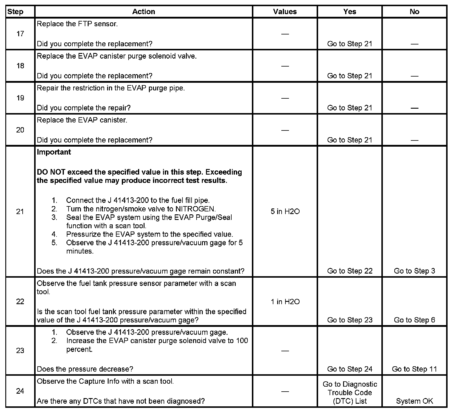 - DTCs P0106, P0107, P0108, P0112, P0113, P0116, P0117, P0118, P0120, P0121, P0122, P0123, P0125, P0131, P0132, P0133, P0134, P0135, P0136, P0137, P0138, P0140, P0141, P0151, P0152, P0153, P0154, P0155, P0156, P0157, P0158, P0160, P0161, P0220, P0442, P0443, P0449, P0452, P0453, P0455, P0502, P0503, P1111, P1112, P1114, P1115, P1125, P1122, P1121, P2135 are not set.