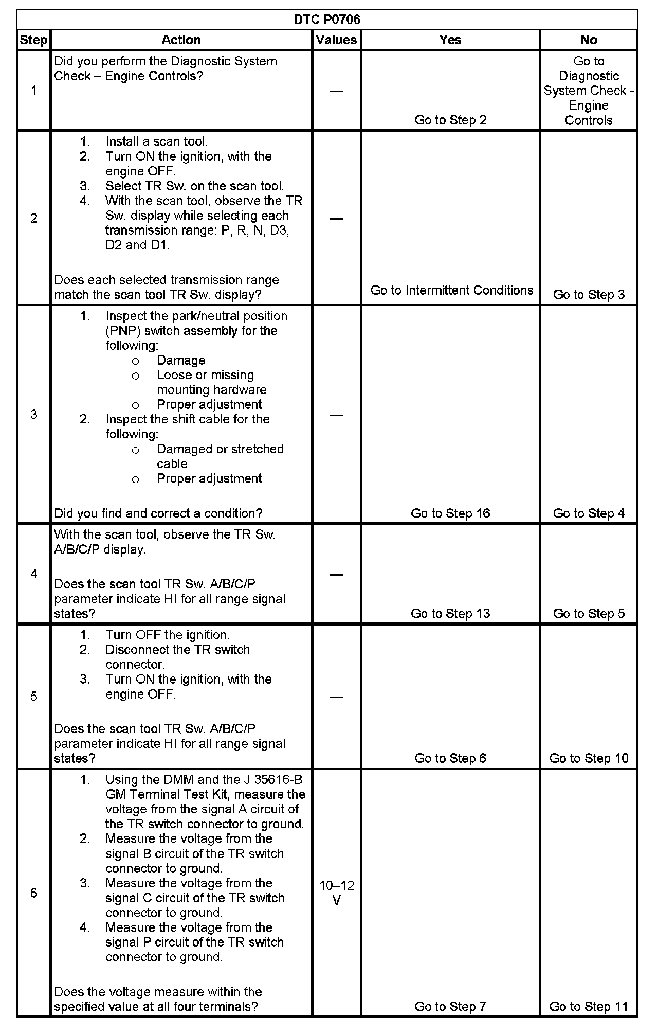 6. This step tests TR switch wiring for an open or the lack of the signal voltage from the PCM.