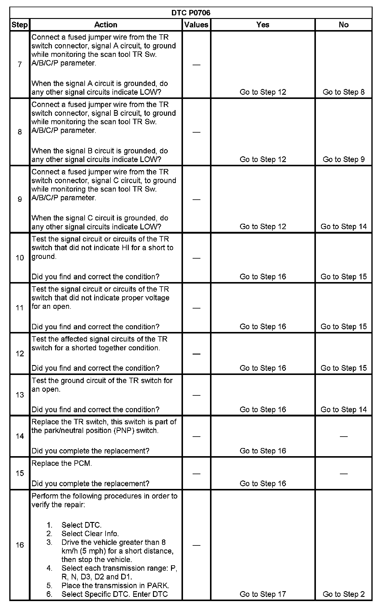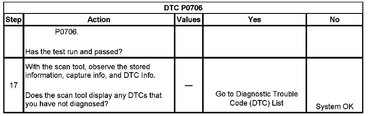 ^ The PCM stores DTC P0706 in PCM history.