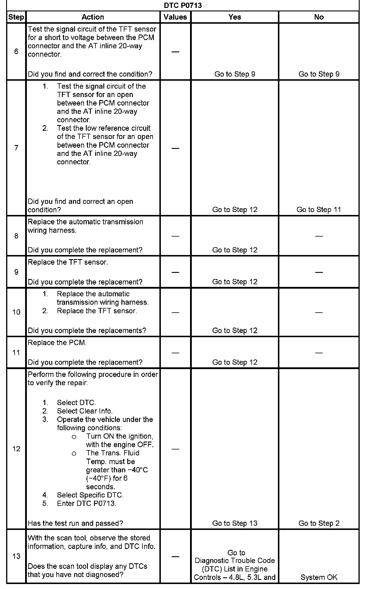 ^ The PCM stores DTC P0713 in PCM history.