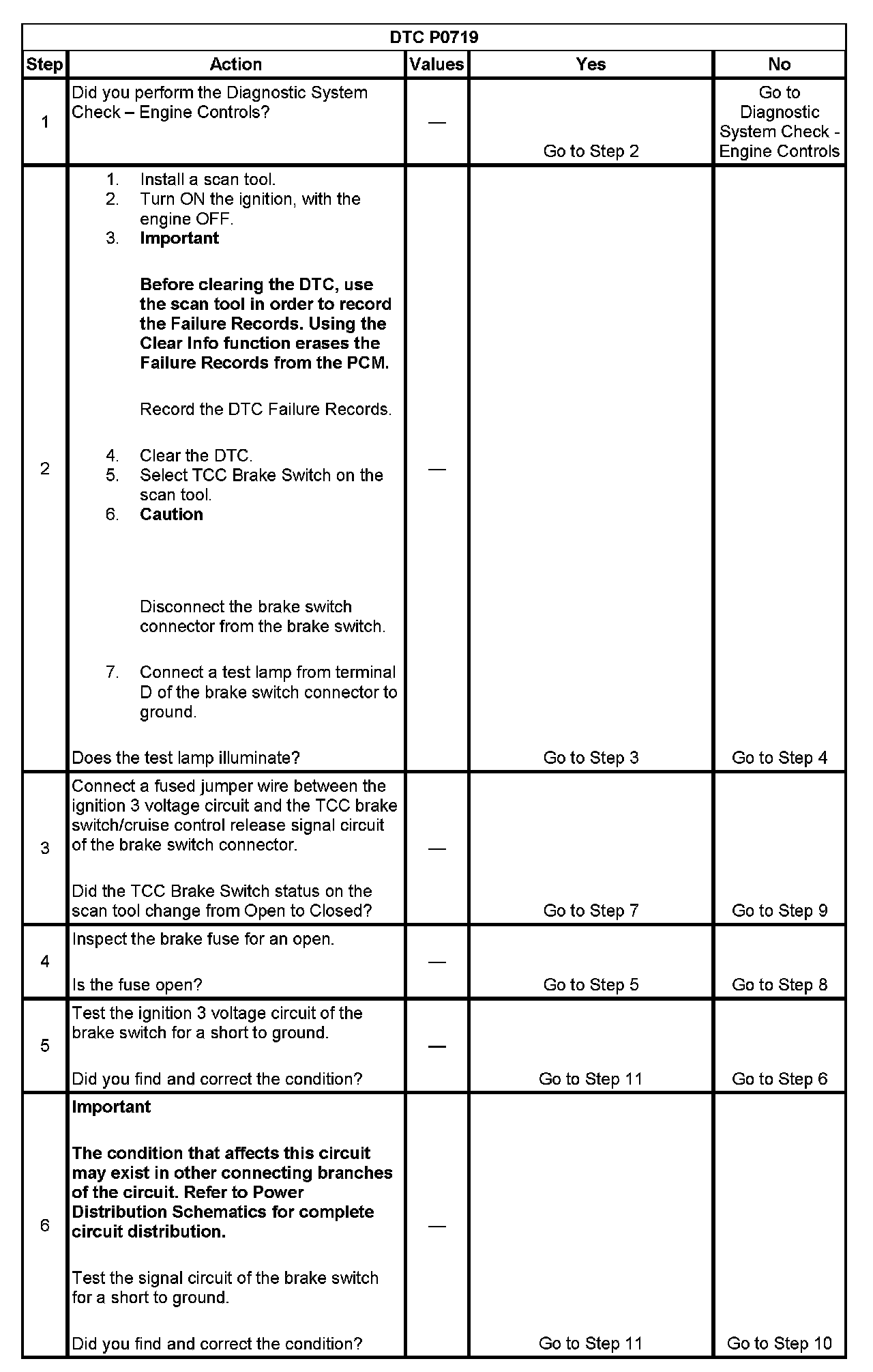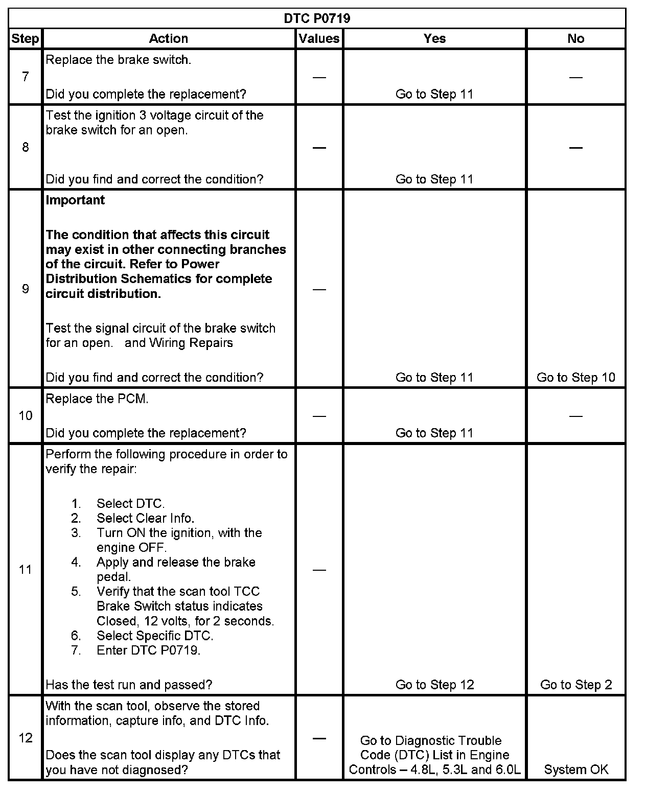 ^ The PCM stores DTC P0719 in PCM history.