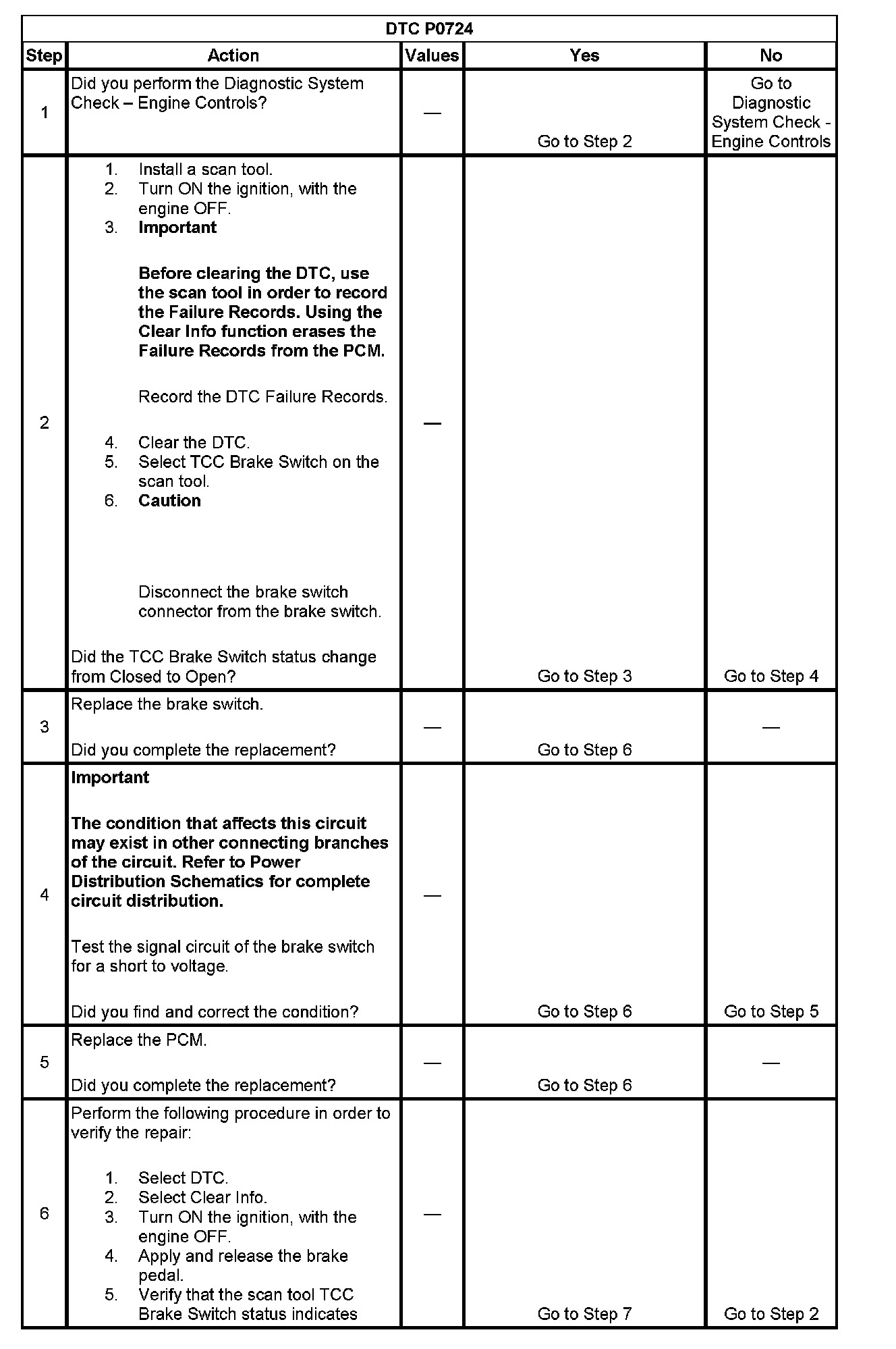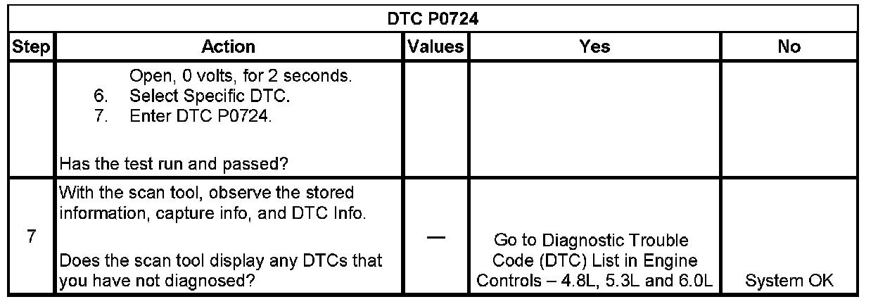 ^ Inspect for ABS DTCs. A faulty ABS condition may contribute to setting DTC P0724.