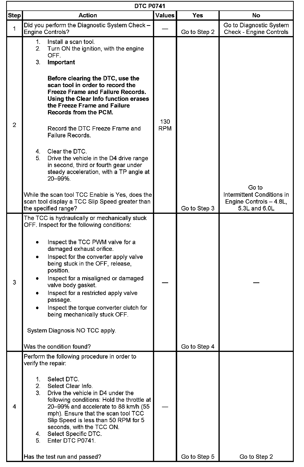 2. This step inspects for excessive TCC slip when the TCC is commanded ON.