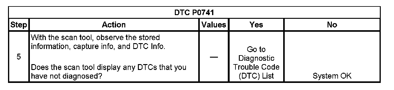 When the PCM detects a high TCC slip speed when the PCM commands the TCC ON, then DTC P0741 sets. DTC P0741 is a type B DTC.