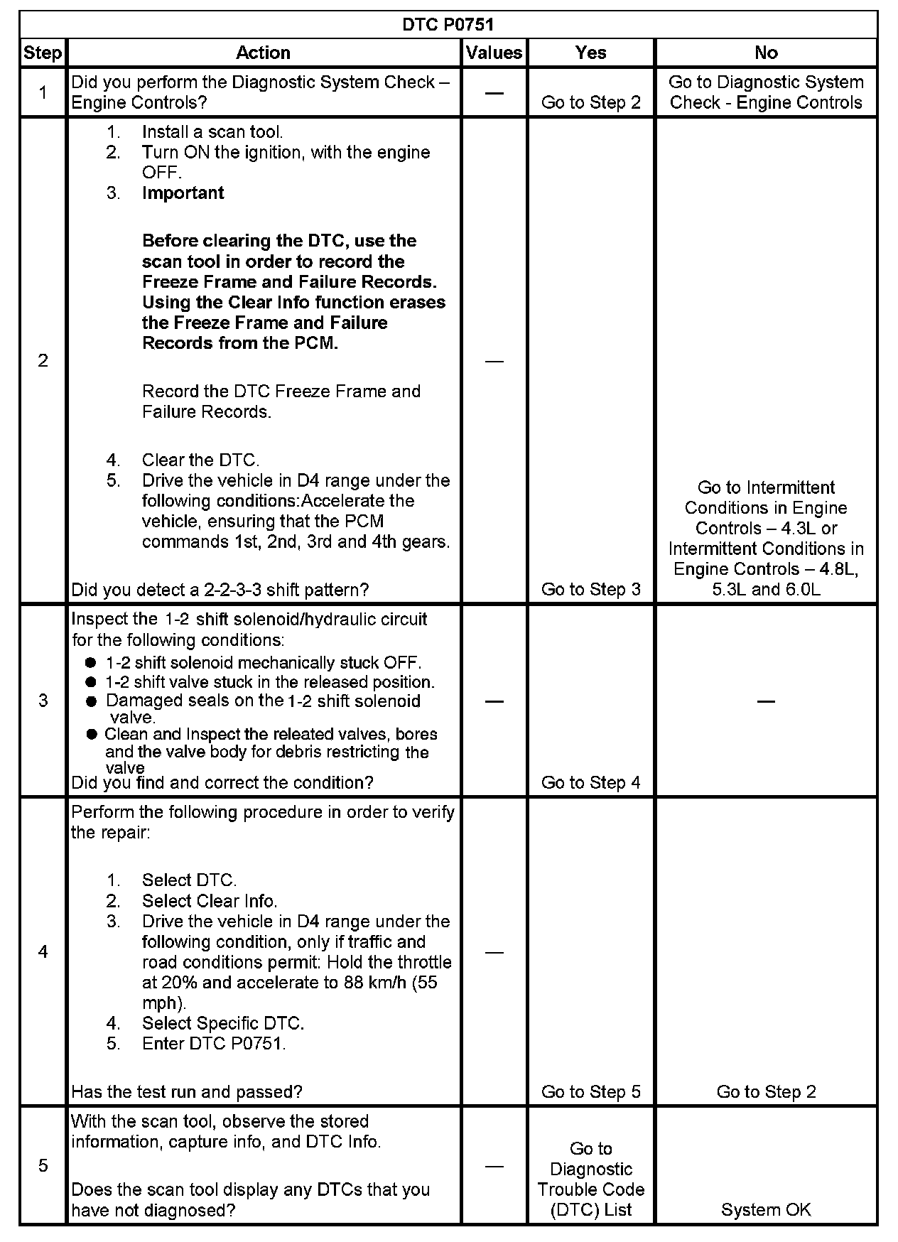 When the PCM detects a 2-2-3-3 shift pattern, then DTC P0751 sets. DTC P0751 is a type B DTC.