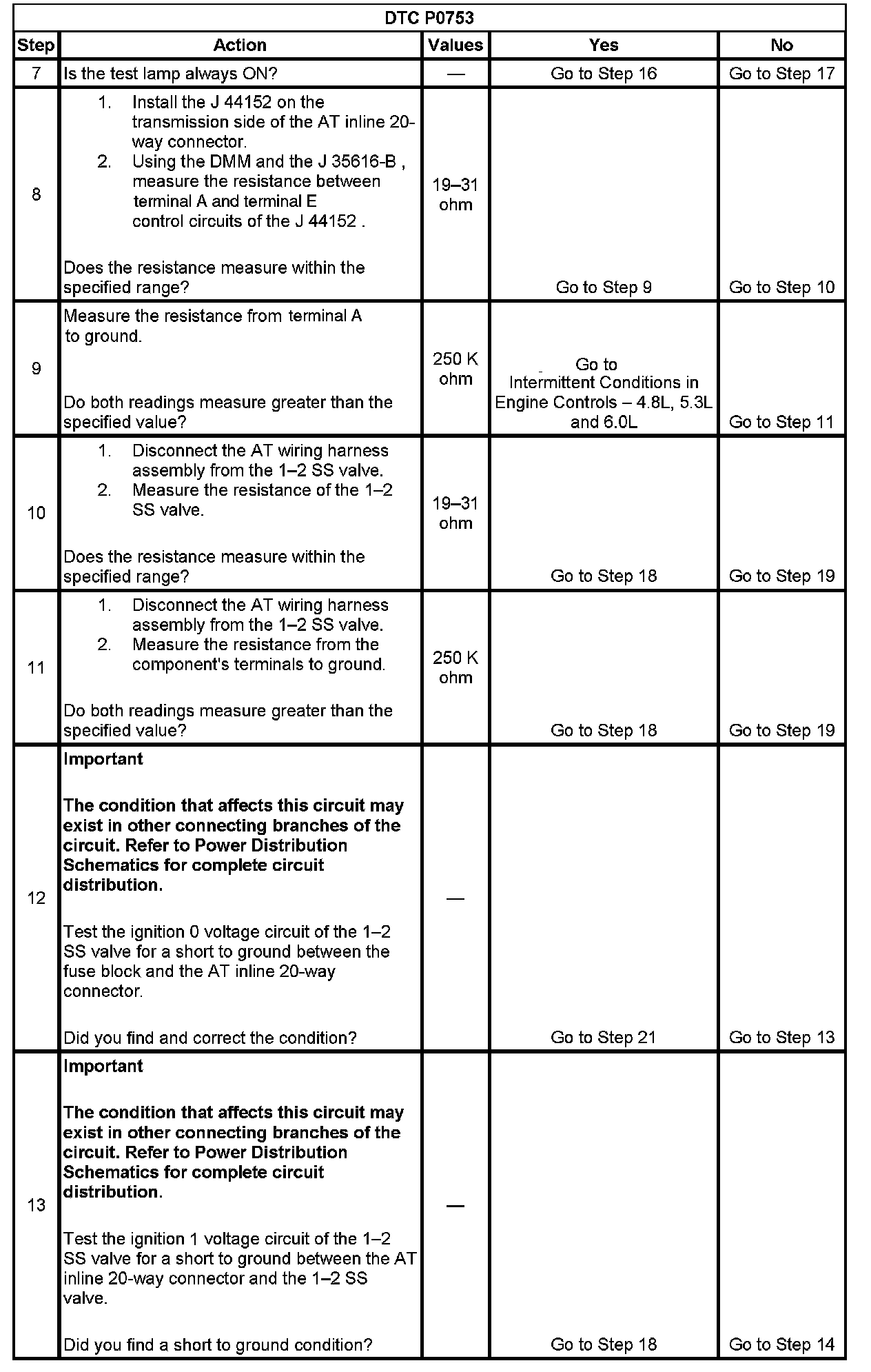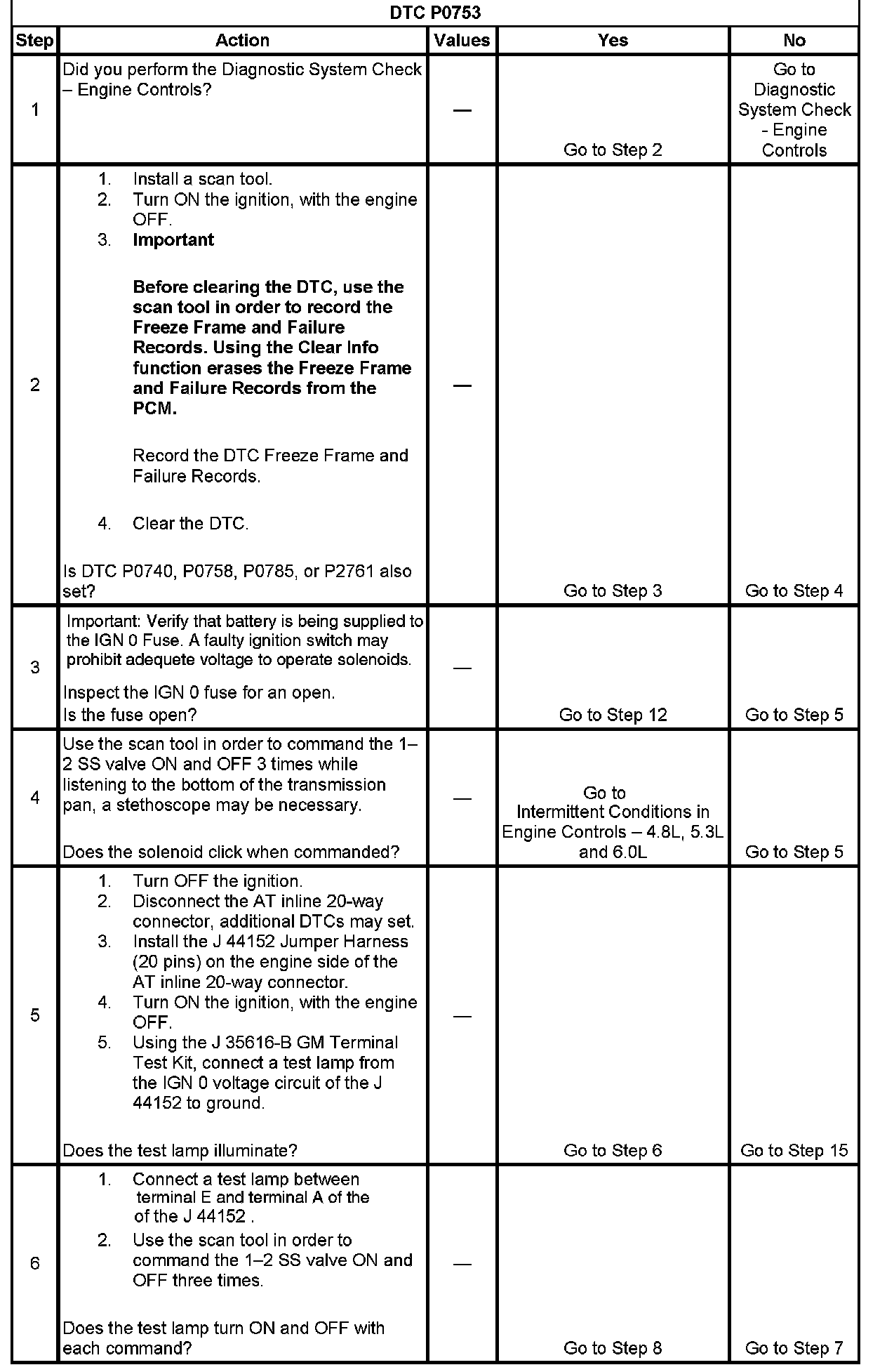 When the PCM detects a continuous open, short to ground or short to power in the 1-2 SS valve circuit, then DTC P0753 sets. DTC P0753 is a type B DTC.