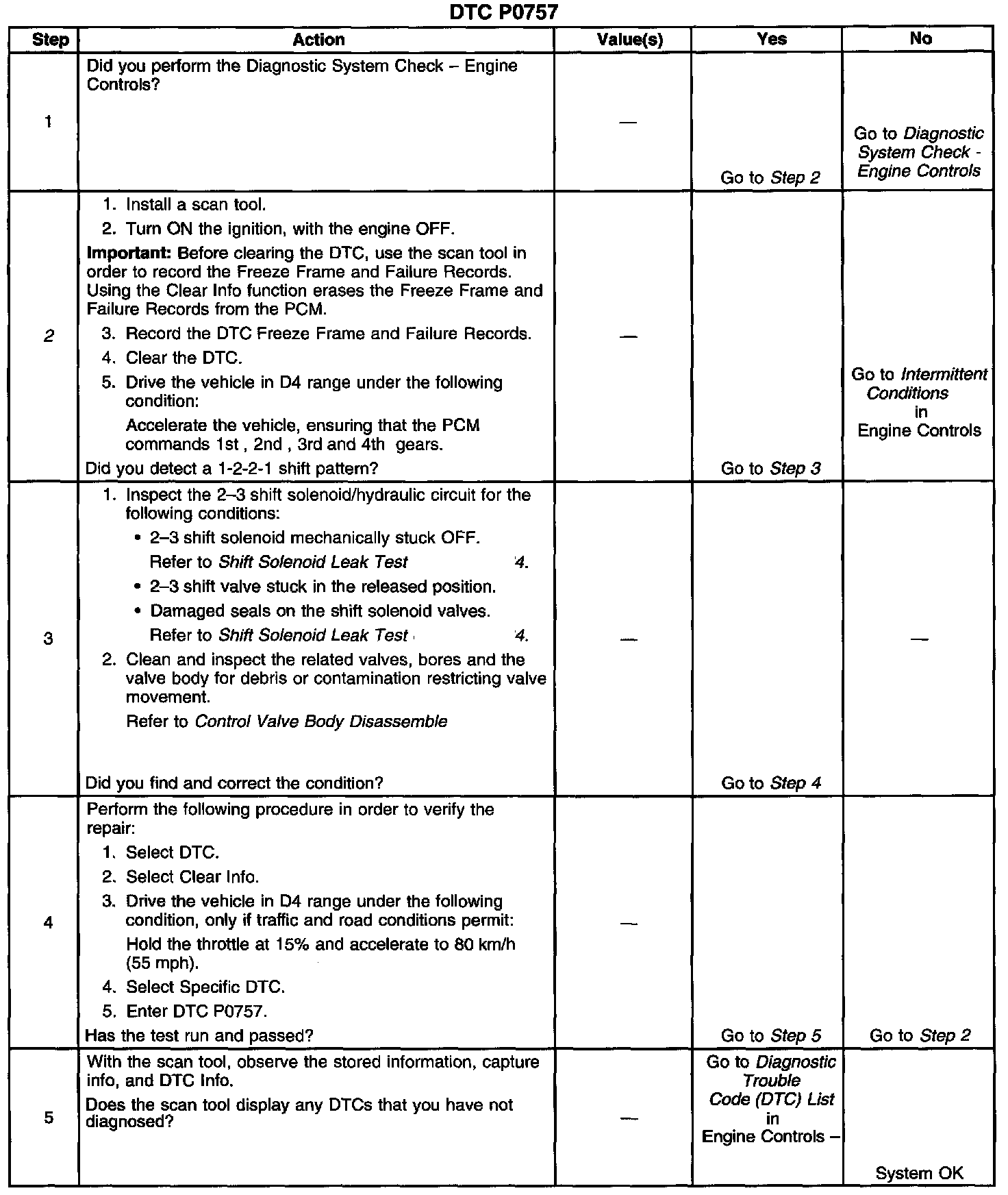 ^ The PCM stores DTC P0757 in PCM history.