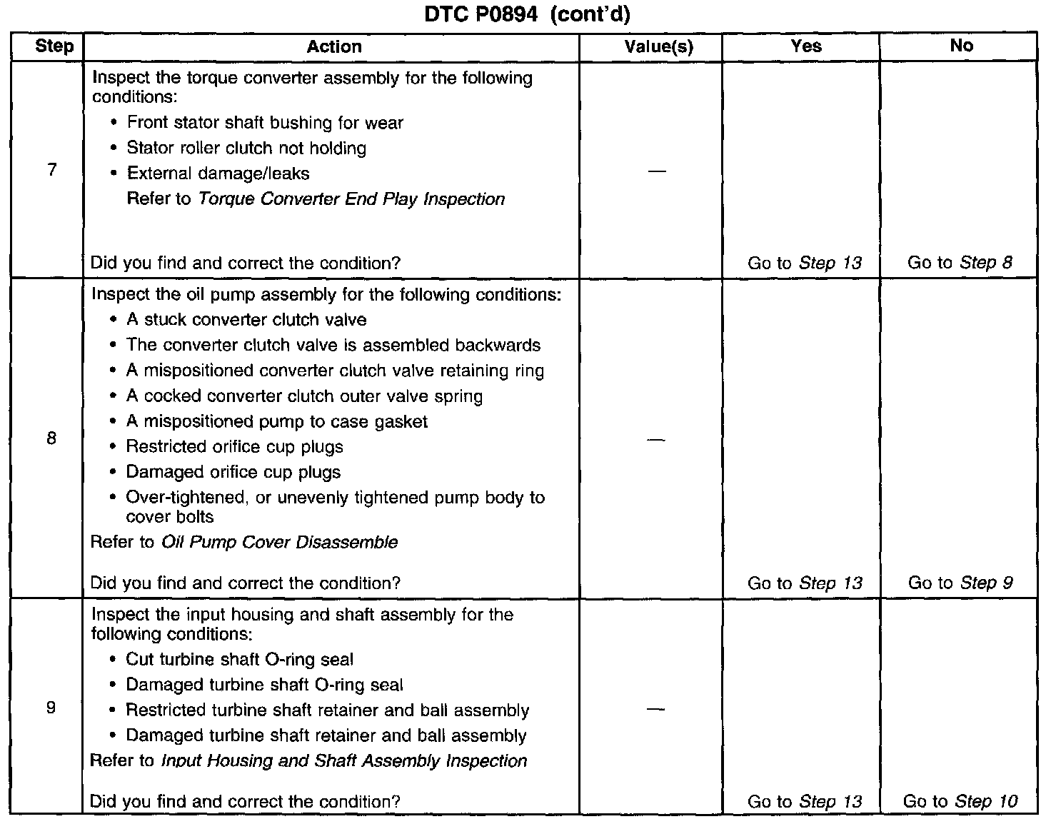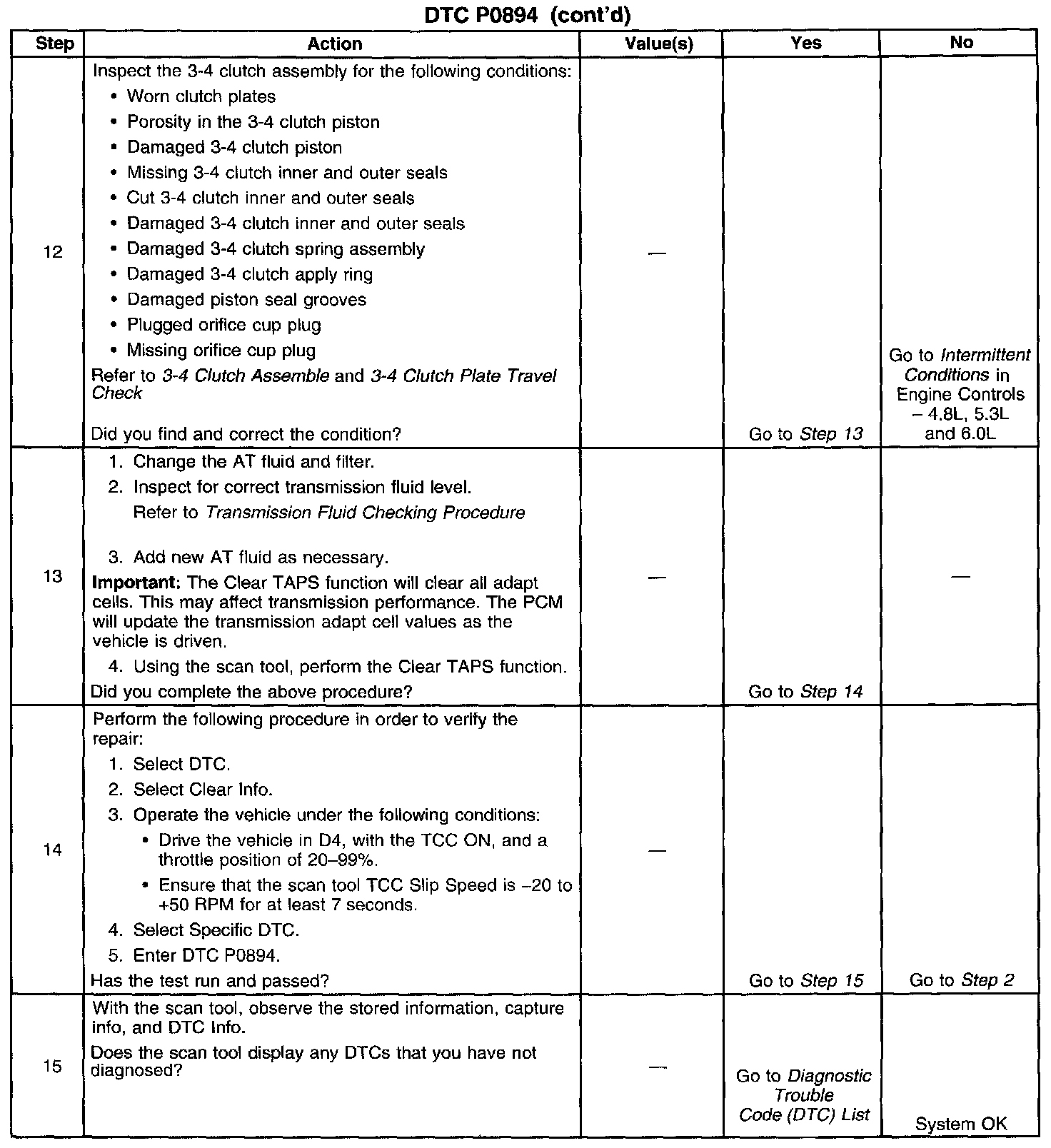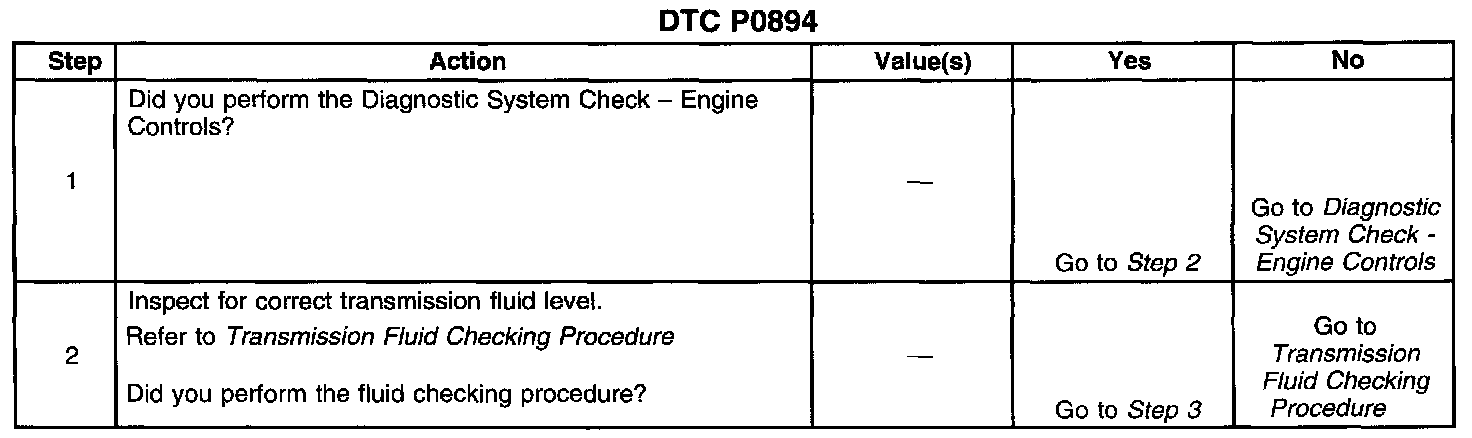 When the PCM detects excessive TCC slip when the TCC should be engaged, then DTC P0894 sets. DTC P0894 is a type B DTC.