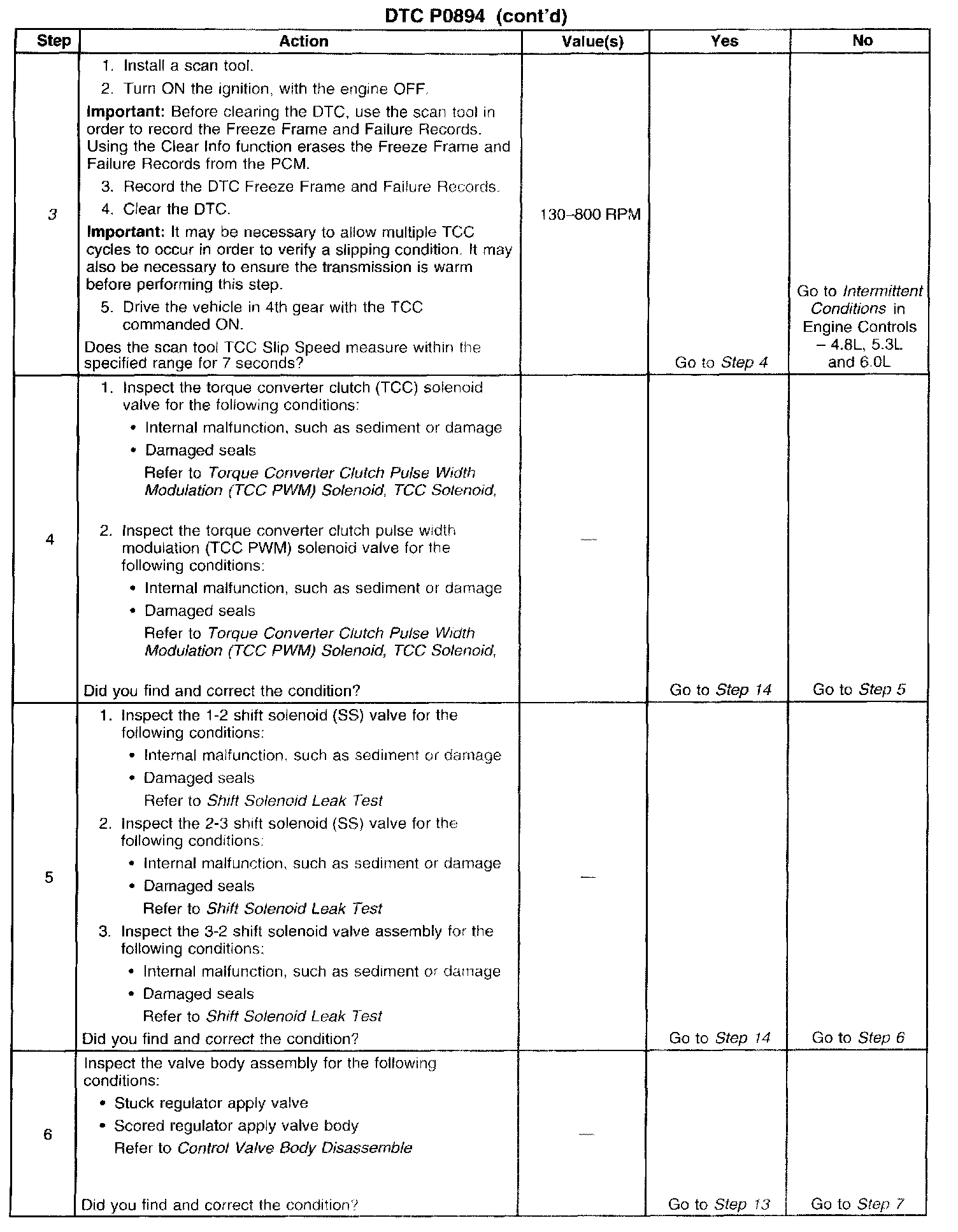 DTC P0894 sets if the following conditions occur for three TCC cycles.